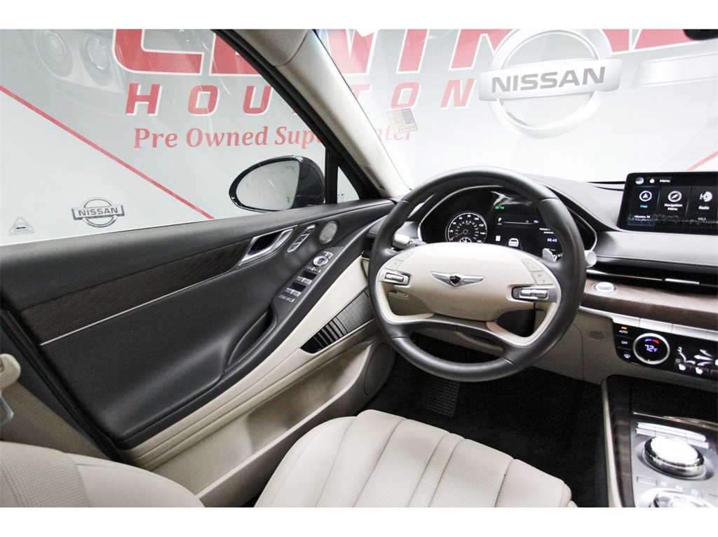 Central Houston Nissan is proud to present you with another True Market Priced Pre-Owned Vehicle. This 2023 Genesis G80 2.5T is loaded with the following Factory Options: Advanced Package (3-Zone Climate Control, Matte Finish Wood Trim, Panoramic Roof, Power Rear & Manual Rear Door Sunshades, Power Trunk, Radio: AM/FM/HD/SiriusXM Lexicon Audio System, and Ventilated Front Seats), 12 Speakers, 4-Wheel Disc Brakes, ABS brakes, Air Conditioning, Alloy wheels, AM/FM radio: SiriusXM, Android Auto & Apple CarPlay, Anti-whiplash front head restraints, Auto High-beam Headlights, Auto tilt-away steering wheel, Auto-dimming door mirrors, Auto-dimming Rear-View mirror, Automatic temperature control, Bumper Applique, Bumpers: body-color, Compass, Delay-off headlights, Driver door bin, Driver vanity mirror, Dual front impact airbags, Dual front side impact airbags, Electronic Stability Control, Emergency communication system: Genesis Connected Services, Exterior Parking Camera Rear, First Aid Kit, Four wheel independent suspension, Front anti-roll bar, Front Bucket Seats, Front Center Armrest, Front dual zone A/C, Front reading lights, Fully automatic headlights, Garage door transmitter: HomeLink, Heated door mirrors, Heated Front Bucket Seats, Heated front seats, Illuminated entry, Knee airbag, Leather steering wheel, Leatherette Seating Surfaces, Low tire pressure warning, Memory seat, Mud Guards, Navigation System, Occupant sensing airbag, Outside temperature display, Overhead airbag, Overhead console, Panic alarm, Passenger door bin, Passenger vanity mirror, Power door mirrors, Power driver seat, Power passenger seat, Power steering, Power windows, Radio data system, Radio: AM/FM/HD/SiriusXM Audio System, Rain sensing wipers, Rear anti-roll bar, Rear reading lights, Rear seat center armrest, Rear side impact airbag, Rear window defroster, Remote keyless entry, Reversible Cargo Tray, Security system, Speed control, Speed-sensing steering, Speed-Sensitive Wipers, Steering wheel memory, Steering wheel mounted audio controls, Tachometer, Telescoping steering wheel, Tilt steering wheel, Traction control, Trip computer, Turn signal indicator mirrors, Variably intermittent wipers, Wheel Locks, and Wheels: 18"x8.0J Alloy!!Central Houston Nissan is more than just your typical car dealership. When our customers visit us, our goal is to provide quality vehicles, exceptional service and a friendly atmosphere. Our staff has been trained to create ease during your purchase or service experience and we are always making sure you get everything you want and deserve out of your visit. Our vision and mission is an employee-centered and customer-focused environment. Vehicles may be subject to prep package and market adjustment. When you buy from Central Houston Nissan, we'll make it the best car buying experience you've ever had. When you purchase a New Nissan or a qualifying Pre-Owned vehicle from Central Houston Nissan, you are automatically enrolled into our Central Houston Nissan Central Care Program at no cost to you. You can’t beat that! Vehicles may be subject to prep package and market adjustment. Stop by 2901 S Loop W, Houston, Texas 77054 today!!!