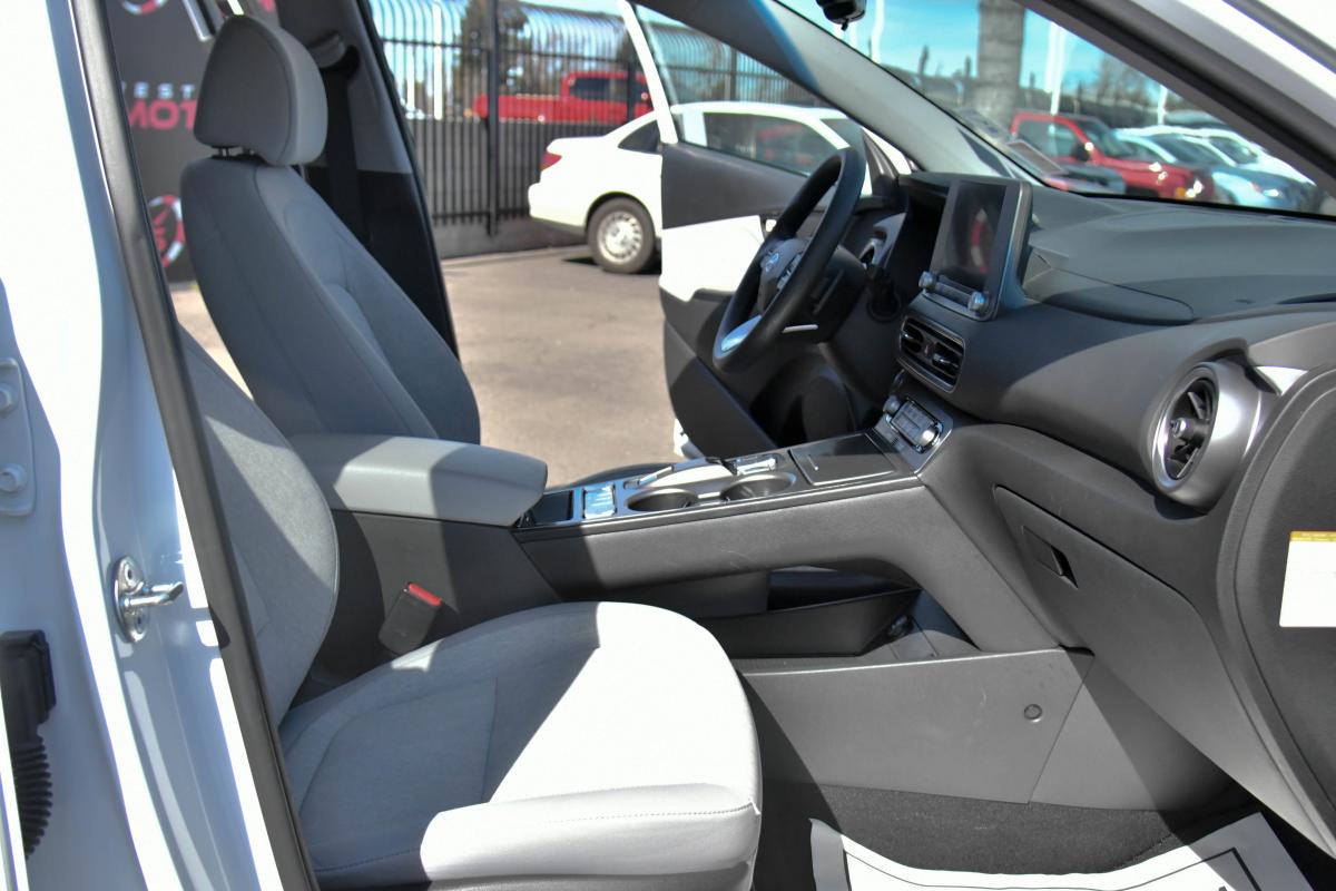 Only 27,249 Miles! This Hyundai Kona Electric boasts a Electric engine powering this Automatic transmission. OPTION GROUP 01 -inc: standard equipment, LUNAR WHITE, GRAY, CLOTH SEAT TRIM.*This Hyundai Kona Electric Comes Equipped with These Options *FIRST AID KIT, CARPETED FLOOR MATS, CARGO TRAY, Wireless Phone Connectivity, Wheels: 17 Unique Alloy, Wheels w/Silver w/Painted Accents, Variable Intermittent Wipers, Valet Function, Turn-By-Turn Navigation Directions, Trip Computer.