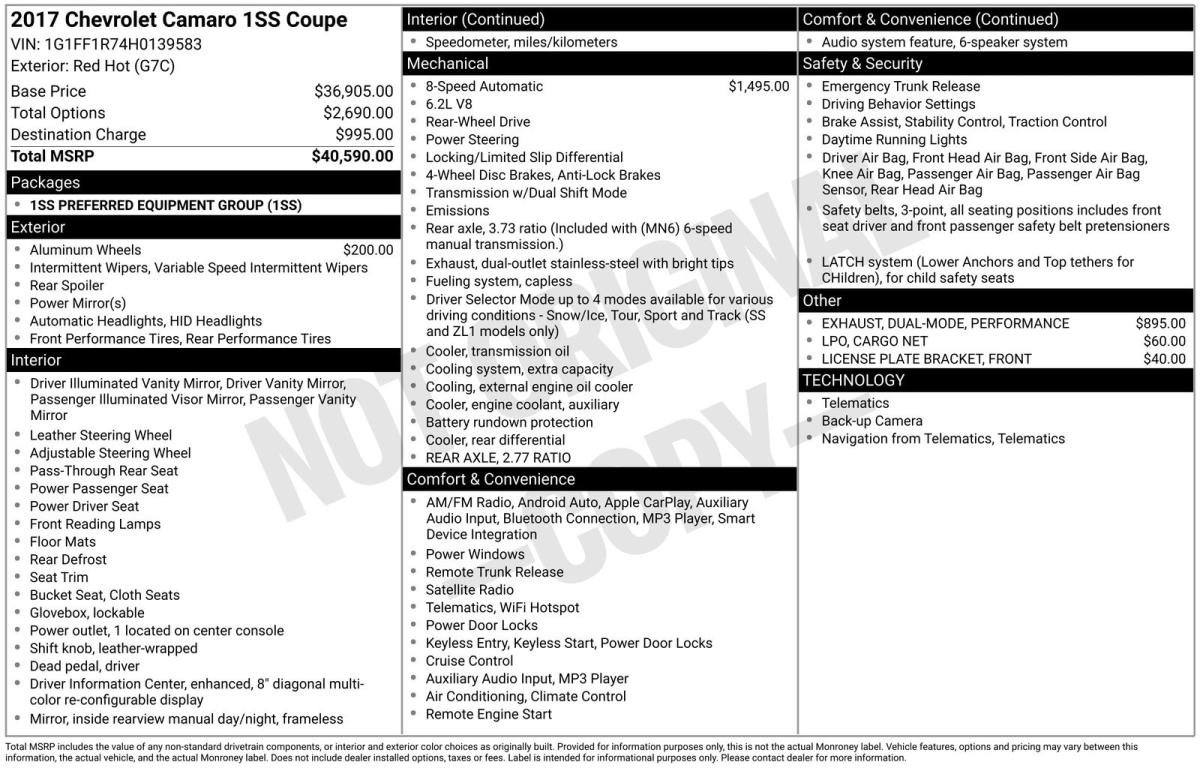 2017 Chevrolet Camaro SS 1SS Recent Arrival! To see more quality vehicles like this one right just click on AaronFordofPoway.com or dial (858) 748-1400.Clean CARFAX. Reviews: * Surprisingly sharp and nimble handling around turns, with lots of grip; appealing lineup of engines, including a strong V6 and a powerful V8, that provide class-leading acceleration; smooth ride quality on the highway and in town; good value, with lots of standard equipment. Source: Edmunds