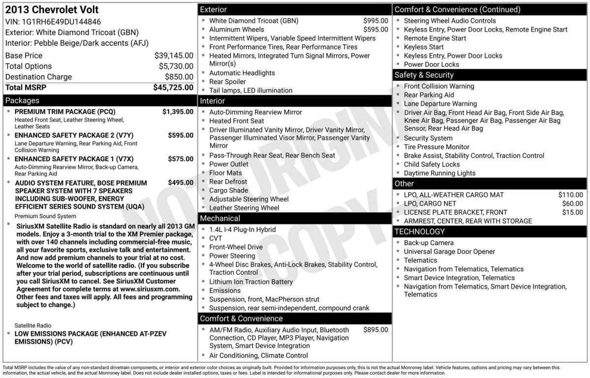 2013 Chevrolet Volt Base Recent Arrival! To see more quality vehicles like this one right just click on AaronFordofPoway.com or dial (858) 748-1400.Reviews: * If you’re worried a pure electric car won’t be able to satisfy your distance requirements before needing to be recharged, the 2013 Chevrolet Volt plug-in hybrid electric sedan is the answer: It carries a charging station around with it, in the form of its 1.4-liter gasoline engine. Source: KBB.com * Low monthly fuel cost in normal driving; useful 300-mile maximum range; appealing standard features; excellent crash test scores. Source: Edmunds