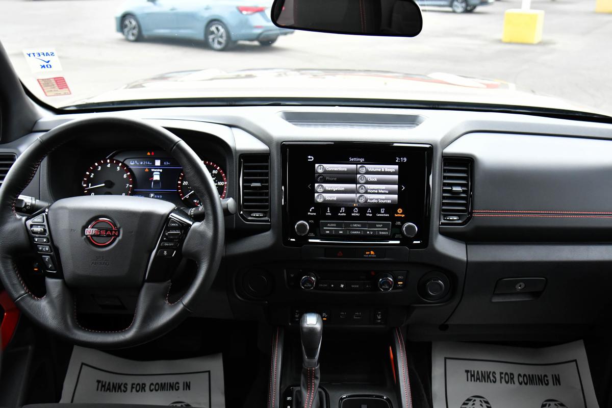 This Nissan Frontier has a dependable Regular Unleaded V-6 3.8 L/231 engine powering this Automatic transmission. CHARCOAL W/LAVA RED STIT, PRO EMBROIDERED PREMIUM CLOTH SEAT TRIM, BAJA STORM, [V02] TECHNOLOGY PACKAGE -inc: Rear Sonar System, Rear Automatic Braking (RAB), High Beam Assist (HBA), Blind Spot Warning (BSW), Rear Cross Traffic Alert (RCTA), Intelligent Cruise Control (ICC), Lane Departure Warning (LDW).*This Nissan Frontier Features the Following Options *[K11] TOW PACKAGE: HITCH, TOW HARNESS, [K02] PRO CONVENIENCE PACKAGE -inc: Bed Under-Rail Lighting, Remote Engine Starter, 120V Power Outlet in Bed, Heated Front Seats, Intelligent Around View Monitor (I-AVM), Moving Object Detection (MOD), Utili-Track System, 2 adjustable tie-down cleats, Spray-In Bedliner, Trailer Hitch w/Wiring Harness, VPC installed accessory, Heated Steering Wheel, Wireless Charging For Personal Devices, Heated Outside Mirrors, 120V Power Outlet in Rear Center Console , [F93] OFF-ROAD STYLE STEP RAILS, [B93] PRO-X MUD FLAPS, Wireless Phone Connectivity, Wi-Fi Hotspot Mobile Hotspot Internet Access, Wheels: 17 Alloy -inc: Type B, orange bi center cap, Variable Intermittent Wipers, Turn-By-Turn Navigation Directions, Trip Computer.