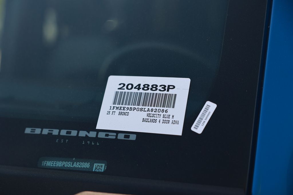 The Price you See is the Price you pay !!! No Games no Forced extras. Transparency is key , come see us for your next car.This 2025 Ford Bronco Badlands is a rugged and capable off-road SUV that's ready to take you on your next adventure. Equipped with a powerful 2.7L EcoBoost V6 engine and 4-wheel drive, this Bronco has the performance and versatility to tackle any terrain.- 2.7L EcoBoost V6 Engine- 10-Speed Automatic Transmission- 4-Wheel Drive- Heated Steering Wheel- Rear Parking Sensors- Power Outlet - Back Side of Center Floor Console- Dual Smart Charging USB Ports- Front Row Heated Seats- Dual-Zone Electronic Automatic Temperature Control- Connected Navigation with Live Traffic and Route Guidance- Ambient Footwell Lighting- 2-Door Intelligent Access with Lock/UnlockThe Bronco Badlands also features a range of advanced safety and technology features, including Ford Co-Pilot360, Blind Spot Information System, and a Rear View Camera with Backup Assist Grid Lines. The body-color hard top adds a distinctive look and helps to reduce noise and improve insulation.Inside, the Bronco Badlands offers a premium, leather-trimmed interior with 10-way power-adjustable front seats and a center armrest with beverage holders. The carpeted flooring provides a more refined feel, while the MOLLE strap system on the front seatbacks offers versatile storage options.Whether you're exploring the great outdoors or navigating the daily commute, this 2025 Ford Bronco Badlands is the perfect blend of capability, comfort, and technology. Come experience it for yourself and discover the true meaning of adventure.Backed by Ford's commitment to quality and reliability, the Bronco Badlands is a smart choice for those who demand the best. Visit our showroom today and let us help you find the perfect Bronco to fit your lifestyle.