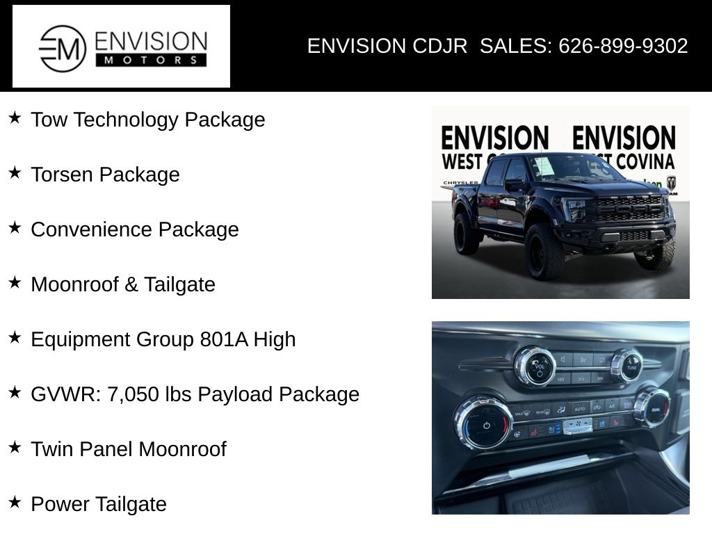 WE SPECIALIZE IN ALL CREDIT PROFILES! See what we can do for you! Call to find out (626) 899-9302.CARFAX One-Owner.Odometer is 9323 miles below market average! 4WD, 360 Degree Camera, Connected Built-In Navigation, Convenience Package, Equipment Group 801A High, Front-Axle w/Torsen Differential, GVWR: 7,050 lbs Payload Package, LED Projector w/Dynamic Bending Headlamps, Moonroof & Tailgate, Power Tailgate, Rigid LED Fog Lamp, Tailgate Applique FORD, Torsen Package, Tow Technology Package, Twin Panel Moonroof.Black Metallic2022 Ford F-150 Raptor 4WD 10-Speed Automatic 3.5L V6 EcoBoost**********All Pricing and Advertised Prices for any/all vehicles offered for sale does not include dealer installed accessories which can be purchased for an additional cost.********** The Factory Rebates may not be available on this vehicle if you elect to take advantage of a Special Alternative APR or Special Lease program. Some Factory Rebates are California Resident specific and may vary for residents of other states. NO sales to Dealers, Brokers or Exporters. For out of state purchase, customers must be present to purchase. If shipping is required, dealership must facilitate; no exceptions. Please contact us for special Multi-Vehicle or Fleet pricing. Prices are plus government fees and taxes, any finance charges, $85 documentary fee, $29 electronic registration fee, any emission testing charge and $1.75 per new tire state tire fee. *** We make every effort to provide accurate information, but please verify before purchasing. Leasing & financing available on approved credit. Trade-ins accepted. Subject to prior sale.