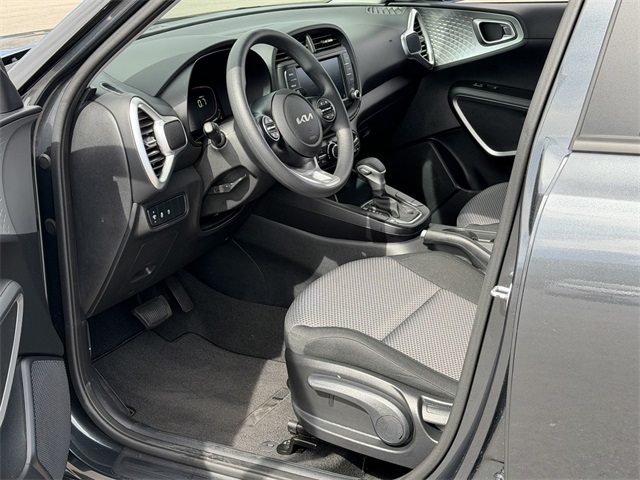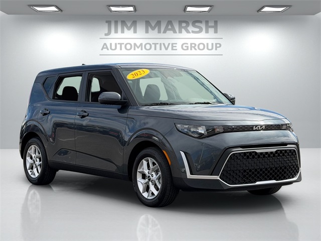 Recent Arrival!CARFAX One-Owner.Odometer is 43896 miles below market average!29/35 City/Highway MPGGravity Gray 2023 Kia Soul LX FWD CVT 2.0L I4 DOHCIf you don't drive here, you can't save here!Price may not include recon fee. LX Technology Package (16" Alloy Wheels, Blind-Spot Collision-Avoidance Assist, Lane Change Assist, and Rear Cross-Traffic Collision Avoidance Assist), 16" Steel Wheels, 4-Wheel Disc Brakes, 6 Speakers, ABS brakes, Air Conditioning, AM/FM radio, Apple CarPlay & Android Auto, Auto High-beam Headlights, Brake assist, Bumpers: body-color, Carpeted Floor Mats, Compass, Delay-off headlights, Driver door bin, Driver vanity mirror, Dual front impact airbags, Dual front side impact airbags, Electronic Stability Control, Exterior Parking Camera Rear, Front anti-roll bar, Front Bucket Seats, Front Center Armrest, Front reading lights, Front wheel independent suspension, Fully automatic headlights, Illuminated entry, Low tire pressure warning, Occupant sensing airbag, Outside temperature display, Overhead airbag, Overhead console, Panic alarm, Passenger door bin, Passenger vanity mirror, Power door mirrors, Power steering, Power windows, Radio data system, Radio: AM/FM/MP3/HD Audio System, Rear window defroster, Rear window wiper, Remote keyless entry, Speed control, Speed-sensing steering, Split folding rear seat, Steering wheel mounted audio controls, Tachometer, Telescoping steering wheel, Tilt steering wheel, Traction control, Trip computer, Variably intermittent wipers, and Woven & Tricot Cloth Seat Trim.