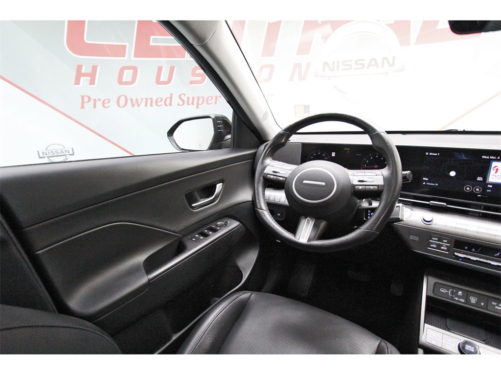 Central Houston Nissan is proud to present you with another True Market Priced Pre-Owned Vehicle. This 2024 Hyundai Kona Limited is loaded with the following Factory Options: Option Group 01, 3.510 Axle Ratio, 4-Wheel Disc Brakes, 8 Speakers, ABS brakes, Air Conditioning, Alloy wheels, AM/FM radio: SiriusXM, Apple CarPlay & Android Auto, Auto High-beam Headlights, Auto-dimming Rear-View mirror, Automatic temperature control, Brake assist, Bumpers: body-color, Cargo Net, Cargo Tray, Carpeted Floor Mats, Column-Mounted Shift-By-Wire, Delay-off headlights, Driver door bin, Driver vanity mirror, Dual front impact airbags, Dual front side impact airbags, Electronic Stability Control, Emergency communication system: Bluelink+, First Aid Kit, Front anti-roll bar, Front Bucket Seats, Front Center Armrest, Front dual zone A/C, Front reading lights, Front wheel independent suspension, Fully automatic headlights, Garage door transmitter: HomeLink, H-Tex Leatherette Seat Trim, Heated & Ventilated Front Bucket Seats, Heated door mirrors, Heated front seats, Heated steering wheel, Illuminated entry, Leather Shift Knob, Leather steering wheel, Low tire pressure warning, Navigation System, Occupant sensing airbag, Outside temperature display, Overhead airbag, Panic alarm, Passenger door bin, Passenger vanity mirror, Power door mirrors, Power driver seat, Power Liftgate, Power moonroof, Power steering, Power windows, Radio: AM/FM/HD Radio/SiriusXM Audio System, Rear seat center armrest, Rear window defroster, Rear window wiper, Remote keyless entry, Security system, Speed control, Speed-sensing steering, Split folding rear seat, Spoiler, Steering wheel mounted audio controls, Tachometer, Telescoping steering wheel, Tilt steering wheel, Traction control, Trip computer, Turn signal indicator mirrors, Variably intermittent wipers, Ventilated front seats, Wheel Locks, and Wheels: 19" x 7.5J Glossy Black Alloy!!Central Houston Nissan is more than just your typical car dealership. When our customers visit us, our goal is to provide quality vehicles, exceptional service and a friendly atmosphere. Our staff has been trained to create ease during your purchase or service experience and we are always making sure you get everything you want and deserve out of your visit. Our vision and mission is an employee-centered and customer-focused environment. Vehicles may be subject to prep package and market adjustment. When you buy from Central Houston Nissan, we'll make it the best car buying experience you've ever had. When you purchase a New Nissan or a qualifying Pre-Owned vehicle from Central Houston Nissan, you are automatically enrolled into our Central Houston Nissan Central Care Program at no cost to you. You can’t beat that! Vehicles may be subject to prep package and market adjustment. Stop by 2901 S Loop W, Houston, Texas 77054 today!!!