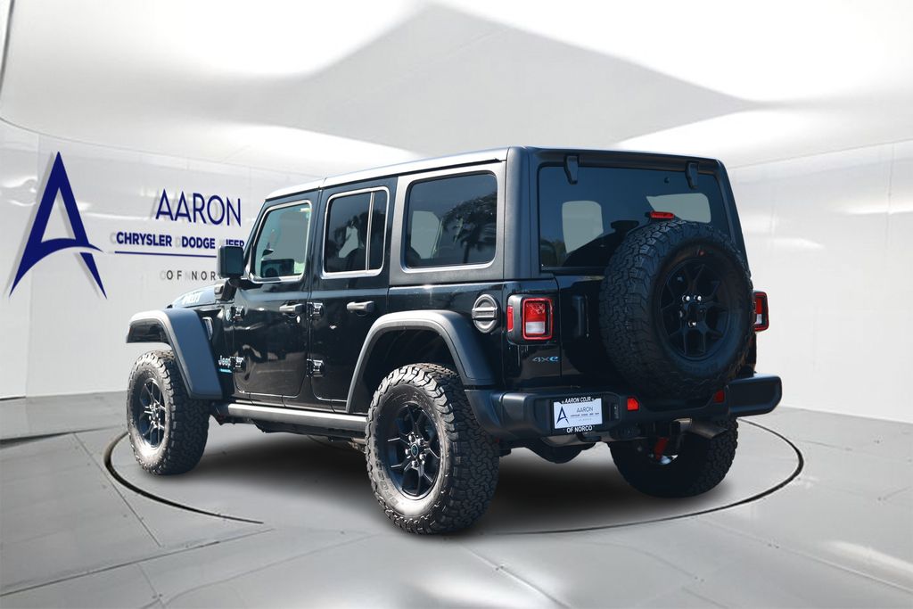 Discover the Thrill of the Open Road with the 2025 Jeep Wrangler Willys 4xeIntroducing the 2025 Jeep Wrangler Willys 4xe, a true icon of off-road adventure that seamlessly blends rugged capability with cutting-edge electrified performance. This stunning Black beauty is more than just a head-turner – it's a gateway to a world of unparalleled exploration and uncompromising style.Standout features of this Wrangler Willys 4xe include:- Quick Order Package 29W Willys 4xe- Black 3-Piece Hard Top- 4-Wheel Drive Swing Gate Decal- 97 MPH Vehicle Max Speed Calibration- Black Grille- Conventional Differential Front Axle- E-Locker Rear Axle- Front LED Fog Lamps- LED Premium Reflector Headlamps- Molded in Color Rubicon Highline Flare- Off-Road Plus Mode- Willys 4xe Hood DecalPowered by a 2.0L I4 DOHC DI Turbo PHEV engine and an 8-Speed Auto 8P75PH PHEV transmission, this Wrangler Willys 4xe delivers the perfect blend of efficiency, performance, and capability. With its 4WD system and advanced off-road features, you'll conquer the toughest terrain with confidence and ease.But the Wrangler Willys 4xe is more than just a rugged adventurer – it's a true expression of your personal style. The sleek Black exterior, combined with the premium interior and advanced technology features, create a driving experience that is both thrilling and refined.Imagine yourself behind the wheel, exploring the great outdoors with the wind in your hair and the sun on your face. The Wrangler Willys 4xe is more than just a vehicle – it's a gateway to a life of adventure and exploration. Don't miss your chance to make this exceptional Jeep Wrangler Willys 4xe your own. Contact us today to schedule a test drive and experience the power and capability of this incredible machine for yourself.