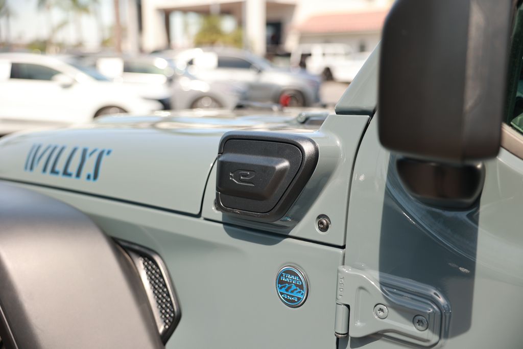 Discover the ultimate off-road adventure with the 2025 Jeep Wrangler Willys 4xe. This remarkable hybrid SUV combines the legendary Wrangler's unparalleled capability with the efficiency and performance of electrified power. Boasting a striking Anvil Clearcoat Gray exterior and a host of premium features, the Willys 4xe is ready to elevate your driving experience to new heights.Tailored for the adventurous spirit, the Willys 4xe comes equipped with an impressive array of features that cater to your every need:- Quick Order Package 29W Willys 4xe- Convenience Group- Black 3-Piece Hard Top- 2.0L I4 DOHC DI Turbo PHEV Engine- 8-Speed Automatic Transmission- 4-Wheel Drive- Off-Road Plus Mode- E-Locker Rear Axle- Front LED Fog Lamps- LED Premium Reflector Headlamps- Heated Front Seats- Heated Steering Wheel- Air Conditioning with Auto Temperature ControlEmbrace the great outdoors with confidence, thanks to the Willys 4xe's impressive off-road prowess. Conquer any terrain with the help of the Conventional Differential Front Axle, Molded in Color Rubicon Highline Flare, and the 4-Wheel Drive Swing Gate Decal. Enjoy the convenience of the Remote Start System and the Passive Entry, Front Door Locks, while the Emergency/Assistance Call feature provides added peace of mind.Step inside and experience the ultimate in comfort and connectivity. The Uconnect 5 infotainment system with a 12.3-inch display, Apple CarPlay, and Android Auto integration keeps you connected and entertained on every journey. The Heated Steering Wheel and Heated Front Seats ensure you stay cozy, even in the harshest conditions.Discover the perfect blend of off-road capability, efficiency, and premium features in the 2025 Jeep Wrangler Willys 4xe. This exceptional hybrid SUV is ready to take you on unforgettable adventures, both on and off the beaten path. Visit our showroom today and experience the thrill of the Willys 4xe for yourself.