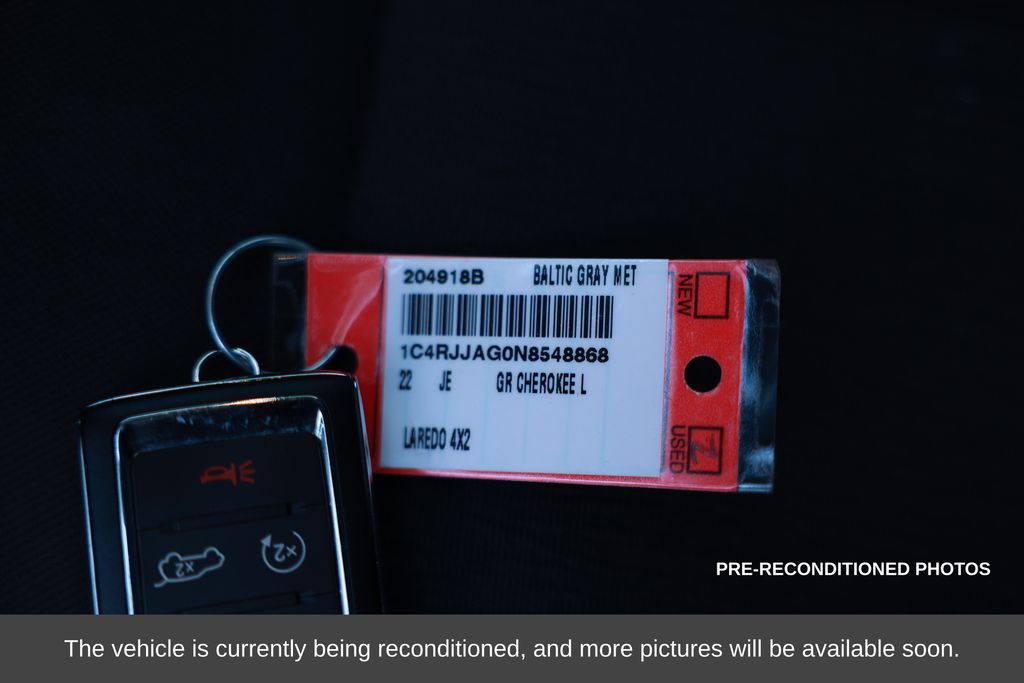 2022 Jeep Grand Cherokee L Laredo LUXURY TECH GROUP I, 3.6L V6 RWD just over 33,000 miles.Baltic Gray Metallic, 3rd Row SUV, 8-speed automatic, Adaptive Cruise Control, Blind Spot Monitor. Para la version en espanol, vea abajo.Powered by a 3.6L V6 paired with an 8-speed automatic and rear-wheel drive, this three-row SUV delivers smooth performance with confident highway manners. The LUXURY TECH GROUP I adds heated front seats, heated steering wheel, rain-sensing wipers, remote engine start, power liftgate, and enhanced convenience for everyday family use.Inside, enjoy cloth bucket seats with power driver lumbar support, multi-zone climate control with rear air conditioning, smart device integration, Bluetooth connectivity, WiFi hotspot capability, and a back-up camera. Safety highlights include Lane Departure Warning with Lane Keeping Assist, Front Collision Mitigation, Rear Parking Aid, traction control, and stability control for added peace of mind.The Grand Cherokee L stands out in the midsize SUV segment for offering true three-row versatility, refined road comfort, and advanced driver-assist technology.We are committed to a transparent and customer-focused buying experience. Every vehicle is thoroughly inspected and reconditioned to meet high standards before being offered for sale. Our knowledgeable team provides clear communication, flexible financing options, and guidance tailored to your needs. We focus on fair, market-based pricing and a no-pressure environment so you can move forward with confidence.Ready to see this vehicle up close? Contact us today to schedule a no-obligation test drive or virtual tour, and let's discuss how we can tailor financing to fit your needs. Our team is dedicated to addressing any concerns and guiding you every step of the way.2022 Jeep Grand Cherokee L Laredo con LUXURY TECH GROUP I, motor 3.6L V6 y traccion trasera, con poco mas de 33,000 millas.Color Baltic Gray Metallic, SUV de tres filas, transmision automatica de 8 velocidades, control crucero adaptativo y monitor de punto ciego.Impulsada por un motor 3.6L V6 con transmision automatica de 8 velocidades y traccion trasera, ofrece manejo suave y estable en carretera. El LUXURY TECH GROUP I agrega asientos delanteros y volante calefactables, sensor de lluvia, encendido remoto y compuerta trasera electrica para mayor comodidad diaria.En el interior cuenta con asientos de tela tipo cubo con ajuste electrico y soporte lumbar para el conductor, clima automatico de multiples zonas con aire trasero, integracion con smartphone y camara de reversa. Incorpora advertencia de salida de carril con asistente de mantenimiento, mitigacion de colision frontal y sensores de estacionamiento para mayor seguridad.El Grand Cherokee L destaca en el segmento de SUVs medianas por su verdadera versatilidad de tres filas, comodidad refinada y tecnologia avanzada de asistencia al conductor.Listo para verla en persona? Contactanos hoy para agendar una prueba de manejo sin compromiso o una visita virtual, y conversemos sobre las opciones de financiamiento que mejor se adapten a ti. Nuestro equipo esta listo para ayudarte en cada paso.