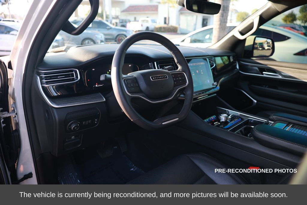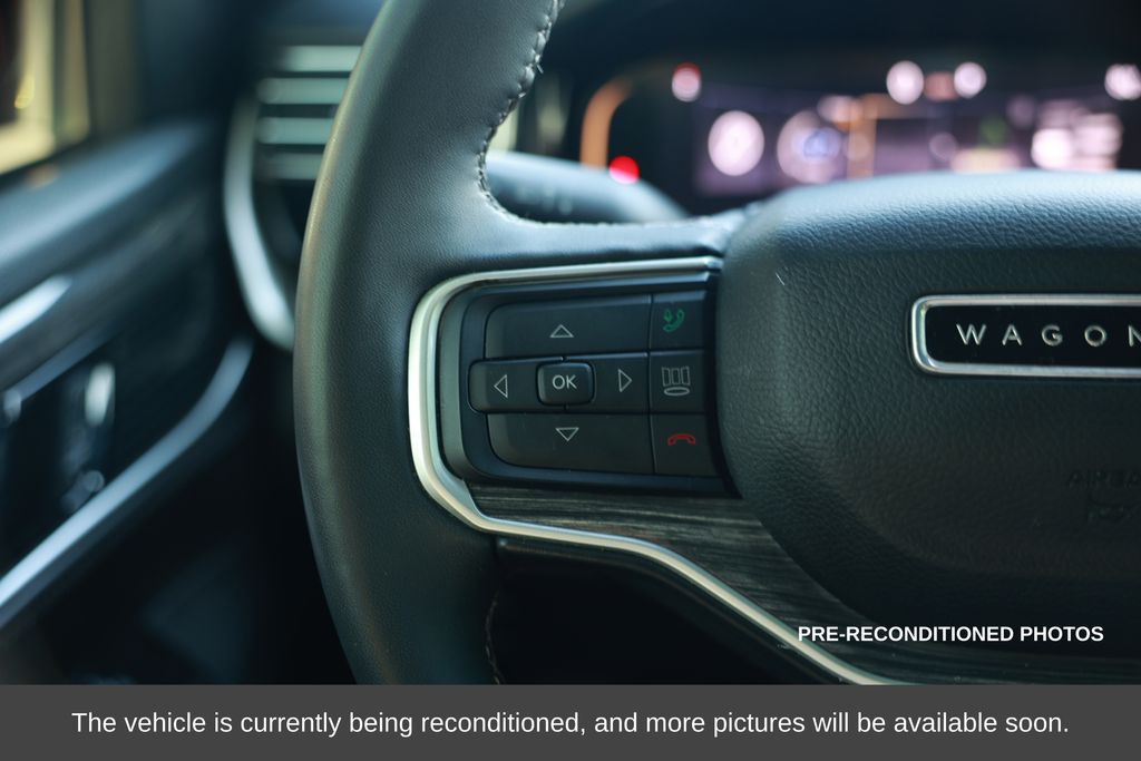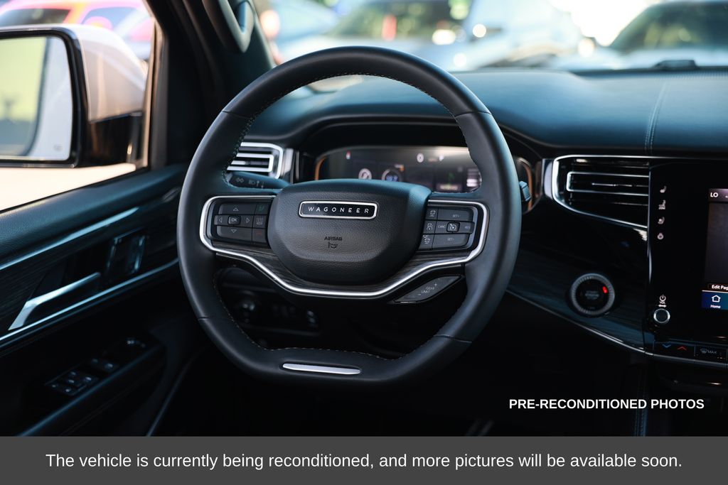 2022 Jeep Wagoneer Series III PREMIUM GROUP I, 5.7L V8 4x4 just over 41,000 miles.Luxury White Pearlcoat, air suspension, panoramic sunroof, Heads-Up Display, navigation. Para la versión en español, vea abajo.Powered by a 5.7L V8 paired with an 8-speed automatic and Automatic Full-Time Four-Wheel Drive, this full-size SUV delivers confident towing strength and smooth highway performance. Air Suspension, locking/limited slip differential, 3.21 rear axle ratio, and a 26.5-gallon fuel tank support long-distance capability and versatile family travel.Inside, enjoy leather bucket seats, heated and ventilated front seats, heated rear seats, heated steering wheel, mirror and seat memory, adjustable pedals, and a power liftgate. PREMIUM GROUP I adds a premium sound system, retractable running boards, cargo shade, and panoramic sunroof. Safety highlights include Lane Departure Warning with Lane Keeping Assist, Blind Spot Monitor, Front Collision Mitigation, and a back-up camera.The Wagoneer Series III stands out in the full-size luxury SUV segment for blending premium craftsmanship, advanced technology, and powerful V8 performance.We are committed to a transparent and customer-first buying experience. Every vehicle is thoroughly inspected and reconditioned to meet high standards before being offered for sale. Our knowledgeable team provides clear communication, flexible financing options, and guidance tailored to your needs. We focus on fair market-based pricing and a no-pressure environment so you can move forward with confidence.If this catches your eye, reach out now for more photos, a detailed walk-around video, or to book an in-dealership appointment. We're committed to making the process smooth, with expert advice on trade-ins and competitive offers to ease any worries.2022 Jeep Wagoneer Series III con PREMIUM GROUP I, motor 5.7L V8 y tracción 4x4, con poco más de 41,000 millas.Color Luxury White Pearlcoat, suspensión de aire, techo panorámico y Heads-Up Display con navegación.Impulsada por un motor 5.7L V8 con transmisión automática de 8 velocidades y tracción integral automática, ofrece gran potencia y manejo suave en carretera. La suspensión de aire, diferencial de deslizamiento limitado y tanque de 26.5 galones la hacen ideal para viajes largos y capacidad familiar.En el interior cuenta con asientos de piel tipo cubo, asientos delanteros ventilados y calefactables, asientos traseros calefactables y volante calefactable. El PREMIUM GROUP I agrega sistema de sonido premium, estribos retráctiles y techo panorámico. Incorpora asistente de mantenimiento de carril, monitor de punto ciego y mitigación de colisión frontal para mayor seguridad.La Wagoneer Series III destaca en el segmento de SUVs grandes de lujo por combinar tecnología avanzada, comodidad premium y potente desempeño V8.Si te interesa, contáctanos ahora para más fotos, un video detallado o para agendar tu cita en la agencia. Estamos listos para brindarte asesoría clara y hacer el proceso sencillo en cada paso.