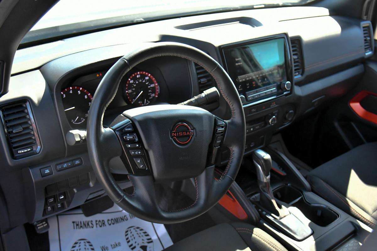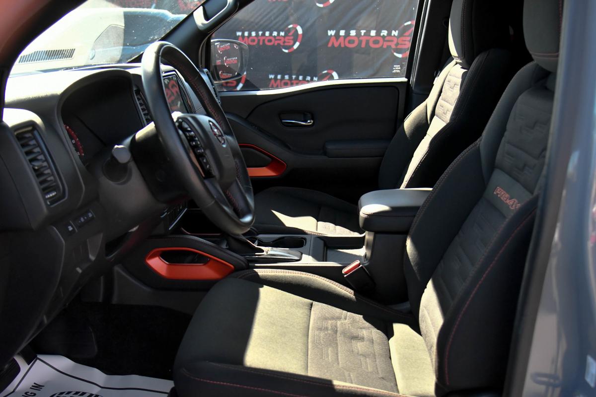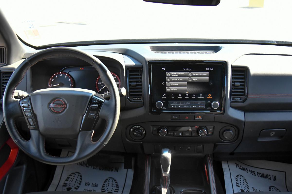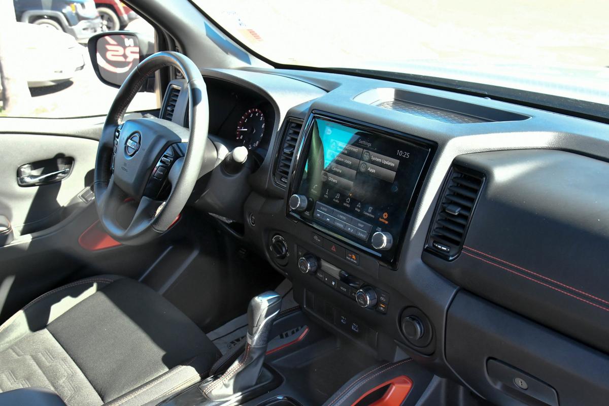 This Nissan Frontier has a dependable Regular Unleaded V-6 3.8 L/231 engine powering this Automatic transmission. CHARCOAL W/LAVA RED STIT, PRO EMBROIDERED PREMIUM CLOTH SEAT TRIM, BOULDER GRAY PEARL, [M92] USB CHARGING CABLE KIT.*This Nissan Frontier Features the Following Options *[K92] OFF-ROAD PROTECTION PACKAGE -inc: adventure medic kit, off-road adventure kit, door scuff protector and owner's manual portfolio, All-Season Floor Mats , [L11] PRO-4X CARPETED FLOOR MATS, [F94] ELECTRONIC TAILGATE LOCK, [B94] PRO-4X MUD FLAPS, Wireless Phone Connectivity, Wheels: 17 Painted Alloy -inc: Type B, orange bi center cap, Variable Intermittent Wipers, Turn-By-Turn Navigation Directions, Trip Computer, Transmission: 9-Speed Automatic w/Overdrive.