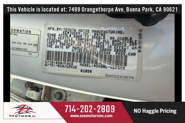 THIS VEHICLE IS LOCATED AT OUR BUENA PARK LOCATION: 7479 ORANGETHORPE AVE, BUENA PARK CA 90621. Please Call us at 657-255-4555 or 714-202-2809 or email us at BUENAPARK@ZEEMOTORSINC.COM To Check Availability. * Clean Title. * Clean Carfax. * No Accidents.* Passed Safety inspection and Smog Check.Attention to all buyers: All special prices are cash price and it does not include sales tax, license and registration fee, documentation fee, smog fee or any dealer add-ons / accessories. Additional financing charges may apply on approved credit. While great effort is made to ensure the accuracy of the information provided on this site, errors do occur so please verify information with a team member. This is easily done by contacting us via phone or email (Call or Text 657-346-8544) All vehicles are equipped with an anti-theft/GPS system. Device cost not included in advertised price unless otherwise stated. See dealer for details and final pricing.* All vehicles offered by Zee Motors Inc. are sold strictly AS-IS, with no dealer warranty expressed or implied, unless otherwise stated in writing.Zee Motors Inc. makes every reasonable effort to present vehicles accurately; however, we do not guarantee the accuracy of vehicle condition, mileage, specifications, equipment, or history. All information provided is for general reference only and may be subject to errors or omissions.* It is the buyer's sole responsibility to independently inspect the vehicle and verify all aspects of its condition, including but not limited to mechanical performance, cosmetic condition, features, options, and prior history, prior to purchase. By completing a purchase, the buyer acknowledges full satisfaction with the vehicle's condition.* For added protection, Zee Motors Inc. also recommends purchasing an optional service contract (extended warranty) through one of our trusted third-party providers. These contracts are not included unless specifically purchased.* We strongly recommend that all customers obtain a third-party pre-purchase inspection (PPI). Inspections are available within a 3-mile radius of the dealership and must be approved and scheduled through Zee Motors Inc.*Zee Motors Inc. reserves the right to deny any claims, requests, or disputes regarding vehicle condition or performance after the sale has been completed, as all used vehicles are sold AS-IS and final.