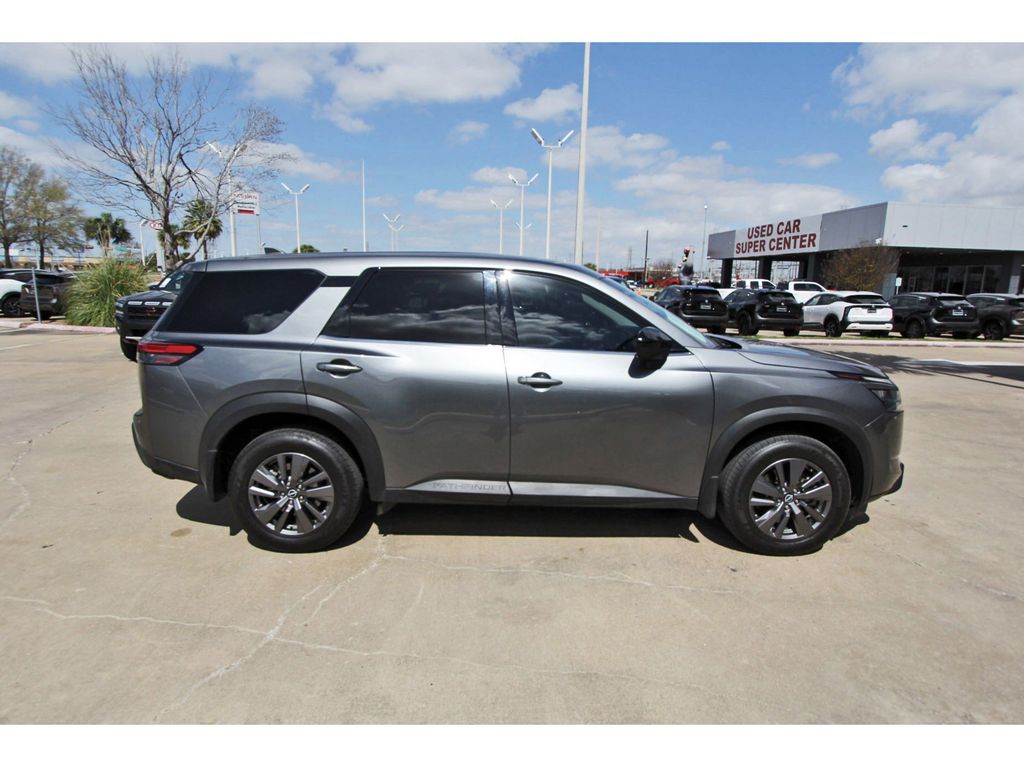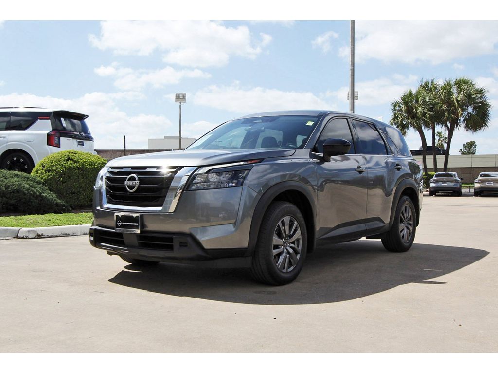South Houston Nissan is proud to present you with another True Market Priced Pre-Owned Vehicle. This 2023 Nissan Pathfinder S is loaded with the following Factory Options: 18" Painted Alloy Wheels, 3rd row seats: bench, 4-Wheel Disc Brakes, 6 Speakers, ABS brakes, Air Conditioning, Alloy wheels, AM/FM radio: SiriusXM, Auto High-beam Headlights, Automatic temperature control, Axle Ratio: 4.334, Bench Seat Carpeted Floor Mats (Set of 4), Black Splash Guards (Set of 4), Blind Spot Warning, Brake assist, Bumpers: body-color, Cloth Seating Surfaces, Delay-off headlights, Driver door bin, Driver vanity mirror, Dual front impact airbags, Dual front side impact airbags, Electronic Stability Control, Four wheel independent suspension, Front anti-roll bar, Front Bucket Seats, Front Center Armrest, Front dual zone A/C, Front reading lights, Fully automatic headlights, Illuminated entry, Knee airbag, Low tire pressure warning, NissanConnect featuring Apple CarPlay and Android Auto, Occupant sensing airbag, Outside temperature display, Overhead airbag, Overhead console, Panic alarm, Passenger door bin, Passenger vanity mirror, Power door mirrors, Power steering, Power windows, Radio data system, Radio: AM/FM Audio System w/NissanConnect, Rear air conditioning, Rear anti-roll bar, Rear Parking Sensors, Rear reading lights, Rear side impact airbag, Rear window defroster, Rear window wiper, Reclining 3rd row seat, Remote keyless entry, Security system, Speed control, Speed-sensing steering, Split folding rear seat, Spoiler, Steering wheel mounted audio controls, Tachometer, Telescoping steering wheel, Tilt steering wheel, Traction control, Trip computer, and Variably intermittent wipers!!Excludes sales taxes (vary by state) tag-title-license and dealer added options. Must finance with South Houston Nissan to qualify for online pricing.