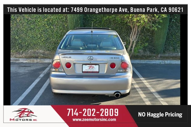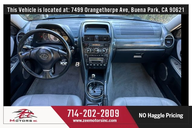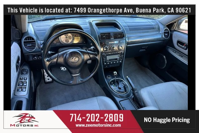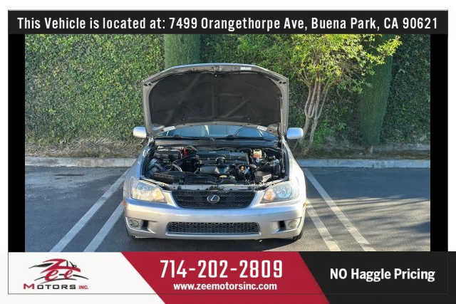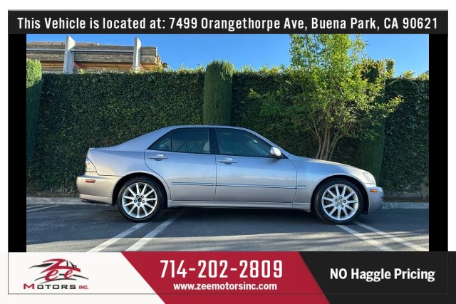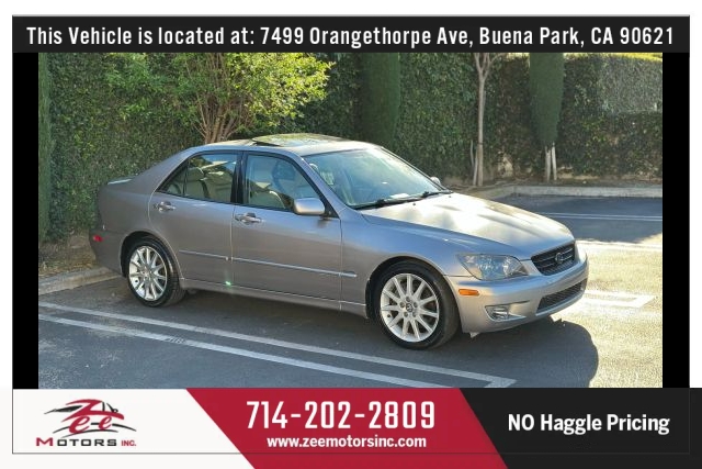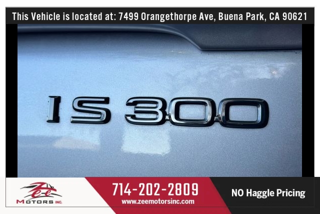 THIS VEHICLE IS LOCATED AT OUR BUENA PARK LOCATION: 7479 ORANGETHORPE AVE, BUENA PARK CA 90621. Please Call us at 657-255-4555 or 714-202-2809 or email us at BUENAPARK@ZEEMOTORSINC.COM To Check Availability.�**** Low Miles IS300 SportDesign **** New Tires **** Major Service Performed **** Timing Belt & Water Pump Replaced ***** 2-Owners. * Clean Title.�* Clean Carfax.�* No Accidents.* Passed Safety inspection and Smog Check.Attention to all buyers: All special prices are cash price and it does not include sales tax, license and registration fee, documentation fee, smog fee or any dealer add-ons / accessories. Additional financing charges may apply on approved credit.�While great effort is made to ensure the accuracy of the information provided on this site, errors do occur so please verify information with a team member. This is easily done by contacting us via phone or email (Call or Text 657-346-8544) All vehicles are equipped with an anti-theft/GPS system. Device cost not included in advertised price unless otherwise stated. See dealer for details and final pricing.* All vehicles offered by Zee Motors Inc. are sold strictly AS-IS, with no dealer warranty expressed or implied, unless otherwise stated in writing.Zee Motors Inc. makes every reasonable effort to present vehicles accurately; however, we do not guarantee the accuracy of vehicle condition, mileage, specifications, equipment, or history. All information provided is for general reference only and may be subject to errors or omissions.* It is the buyer's sole responsibility to independently inspect the vehicle and verify all aspects of its condition, including but not limited to mechanical performance, cosmetic condition, features, options, and prior history, prior to purchase. By completing a purchase, the buyer acknowledges full satisfaction with the vehicle's condition.* For added protection, Zee Motors Inc. also recommends purchasing an optional service contract (extended warranty) through one of our trusted third-party providers. These contracts are not included unless specifically purchased.* We strongly recommend that all customers obtain a third-party pre-purchase inspection (PPI). Inspections are available within a 3-mile radius of the dealership and must be approved and scheduled through Zee Motors Inc.*Zee Motors Inc. reserves the right to deny any claims, requests, or disputes regarding vehicle condition or performance after the sale has been completed, as all used vehicles are sold AS-IS and final.