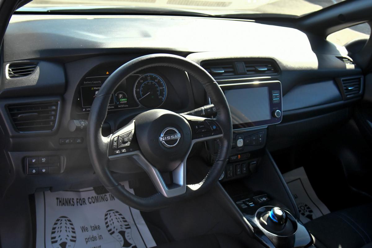 Only 14,148 Miles! This Nissan LEAF delivers a Electric engine powering this Automatic transmission. GUN METALLIC, BLACK, CLOTH SEAT TRIM, [B93] SPLASH GUARDS.*This Nissan LEAF Features the Following Options *Wireless Phone Connectivity, Variable Intermittent Wipers, Trip Computer, Transmission: Single Speed Reducer, Torsion Beam Rear Suspension w/Coil Springs, Tire Specific Low Tire Pressure Warning, Tire Mobility Kit, Tailgate/Rear Door Lock Included w/Power Door Locks, Strut Front Suspension w/Coil Springs, Smart Device Remote Engine Start.