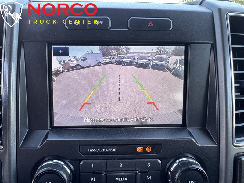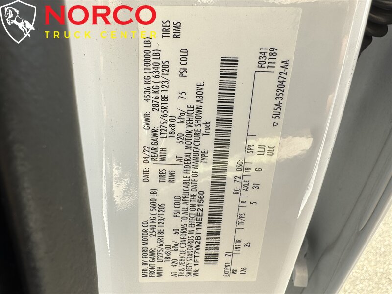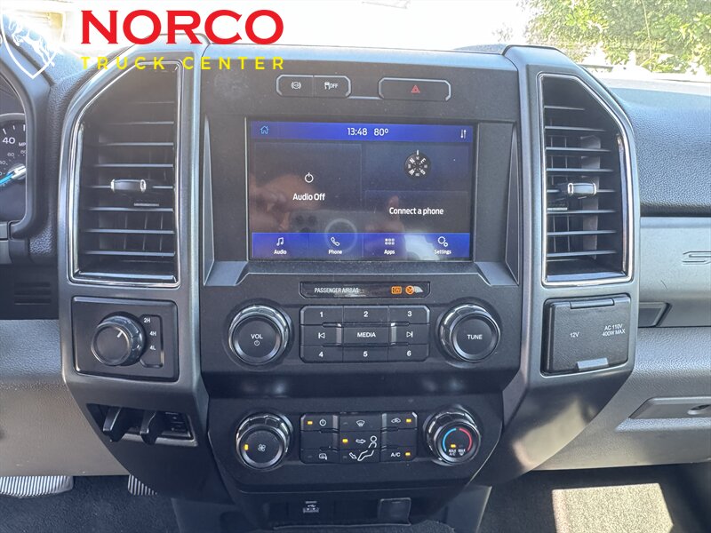 INSTALLED FEATURES: Air filtration, Front air conditioning, Front air conditioning zones: single, Airbag deactivation: passenger switch, Front airbags: dual, Side airbags: front, Side curtain airbags: front / rear, Antenna type: mast, Auxiliary audio input: Bluetooth / USB, Radio: AM/FM / voice operated, Speed sensitive volume control, Total speakers: 4, ABS: 4-wheel, Braking assist, Electronic brakeforce distribution, Front brake type: ventilated disc, Power brakes, Rear brake type: ventilated disc, Armrests: front center, Door sill trim: scuff plate, Floor material: rubber/vinyl, Steering wheel trim: urethane, Assist handle: front / rear, Cupholders: front, Overhead console: front, Power outlet(s): 12V front / USB front / USB-C front, Power steering, Reading lights: front / rear, Rearview mirror: manual day/night, Steering wheel: tilt and telescopic, Steering wheel mounted controls: audio / multi-function / phone / voice control, Storage: accessory hook / door pockets, Vanity mirrors: passenger, Door handle color: black, Front bumper color: black, Grille color: black, Mirror color: black, Pickup bed light, Rear bumper color: black, Tailgate: lift assist / removable, Window trim: black, Connected in-car apps: app marketplace integration, Infotainment: SYNC, Infotainment screen size: 4.2 in., Clock, Digital odometer, External temperature display, Gauge: oil pressure / tachometer / transmission temperature, Instrument cluster screen size: 2.3 in., Powertrain hour meter, Warnings and reminders: low fuel level / maintenance due, Headlights: auto delay off / auto on/off / halogen / quad headlights / wiper activated, Side mirror adjustments: manual / manual folding / manual telescoping, Towing mirrors, 4WD selector: electronic hi-lo, 4WD type: part time, Alternator: 157 amps, Battery: maintenance-free, Battery rating: 650 CCA, Battery saver, Automatic hazard warning lights, Camera system: rearview, Child safety door locks, Child seat anchors: LATCH system, Crumple zones: front, Impact sensor: alert system / door unlock / post-collision safety system, Programmable safety key, Rearview monitor: in dash, Emergency locking retractors: front / rear, Front seatbelts: 3-point, Rear seatbelts: 3-point, Seatbelt pretensioners: front, Seatbelt warning sensor: front, Driver seat manual adjustments: 6 / lumbar / reclining, Front headrests: 2 / adjustable, Front seat type: 40-20-40 split bench, Passenger seat manual adjustments: 4 / reclining, Rear headrests: 3 / adjustable, Rear seat folding: folds up / split, Rear seat type: 60-40 split bench, Upholstery: vinyl, Anti-theft system: vehicle immobilizer, Hill holder control, Roll stability control, Stability control, Traction control, Trailer stability control, Front shock type: gas, Front spring type: coil, Front stabilizer bar, Front suspension classification: solid live axle, Front suspension type: multi-link, Rear shock type: gas, Rear spring type: leaf, Rear suspension classification: solid live axle, Rear suspension type: multi-leaf, Electronic messaging assistance: voice operated / with read function, Hands-free phone call integration: voice operated, Smart device app compatibility: FordPass Connect, Smart device app function: engine start / lock operation / maintenance status / vehicle location, Wi-Fi: hotspot, Wireless data link: Bluetooth, Tow hooks: front, Trailer hitch, Trailer wiring: 4-pin / 7-pin, Spare tire mount location: underbody, Spare tire size: full-size, Spare wheel type: steel, Tire Pressure Monitoring System, Wheels: painted steel, Front wipers: variable intermittent, Solar-tinted glass: front
