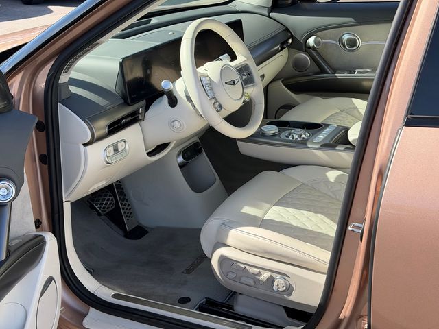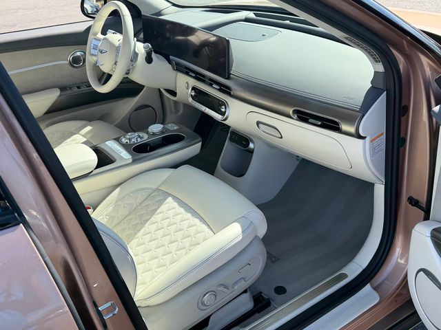 CARFAX One-Owner.Clean CARFAX.97/82 City/Highway MPGBurnt Orange 2023 Genesis GV60 Performance AWD 1-Speed Automatic Electric MotorSee Ya in a KIA.All prices plus $495 Doc Fee (lowest fees in Las Vegas) 10.650 Axle Ratio, 17 Speakers, 4-Wheel Disc Brakes, ABS brakes, Adaptive suspension, Air Conditioning, Alloy wheels, AM/FM radio: SiriusXM, Android Auto & Apple CarPlay, Anti-whiplash front head restraints, Auto High-beam Headlights, Auto tilt-away steering wheel, Auto-dimming door mirrors, Auto-dimming Rear-View mirror, Automatic temperature control, Brake assist, Bumpers: body-color, Delay-off headlights, Driver door bin, Driver vanity mirror, Dual front impact airbags, Dual front side impact airbags, Electronic Stability Control, Emergency communication system: Genesis Connected Services, Exterior Parking Camera Rear, Four wheel independent suspension, Front anti-roll bar, Front Bucket Seats, Front Center Armrest, Front dual zone A/C, Front reading lights, Fully automatic headlights, Garage door transmitter: HomeLink, Heads-Up Display, Heated & Ventilated Front Seats w/Memory, Heated door mirrors, Heated front seats, Heated rear seats, Heated steering wheel, Illuminated entry, Knee airbag, Leather steering wheel, Low tire pressure warning, Memory seat, Nappa Leather Seating Surfaces, Navigation System, Occupant sensing airbag, Outside temperature display, Overhead airbag, Overhead console, Panic alarm, Passenger door bin, Passenger vanity mirror, Power door mirrors, Power driver seat, Power Liftgate, Power passenger seat, Power steering, Power windows, Radio: AM/FM/XM/HD Bang & Olufsen Premium Audio System, Rain sensing wipers, Rear anti-roll bar, Rear reading lights, Rear seat center armrest, Rear window defroster, Remote keyless entry, Security system, Speed control, Speed-sensing steering, Split folding rear seat, Spoiler, Steering wheel memory, Steering wheel mounted audio controls, Telescoping steering wheel, Tilt steering wheel, Traction control, Trip computer, Turn signal indicator mirrors, Variably intermittent wipers, Ventilated front seats, and Wheels: 21" x 8.5J 5-Spoke Medium Sputtering Alloy.