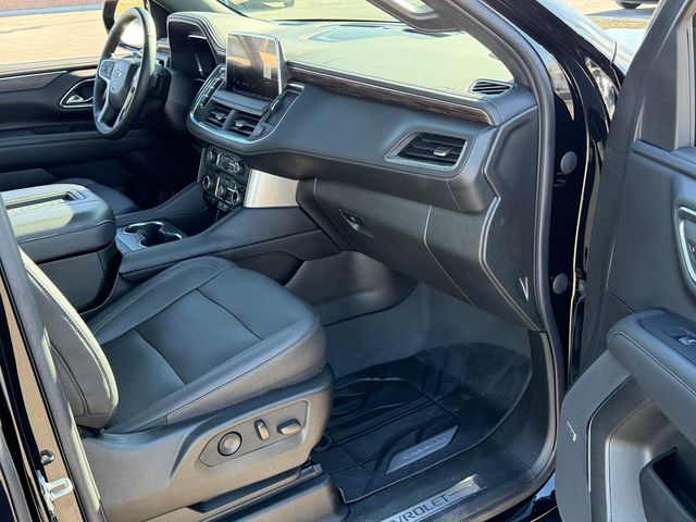 CARFAX One-Owner.Odometer is 13340 miles below market average!Black 2023 Chevrolet Tahoe Z71 4WD 10-Speed Automatic with Overdrive EcoTec3 5.3L V8 ** MOONROOF **, NAVIGATION, PANORAMIC MOONROOF, 4WD, Black Leather, 2nd Row Pwr Release 60/40 Split-Folding Bench Seat, 3rd Row 60/40 Power-Folding Split-Bench Seat, Advanced Trailering Package, Air Ride Adaptive Suspension, Driver Alert Package, Electronic Limited-Slip Differential, Extra Capacity Cooling System, HD Surround Vision, Heated 2nd Row Outboard Seats, Heated Steering Wheel, Hitch Guidance w/Hitch View, Integrated Trailer Brake Controller, Lane Change Alert w/Side Blind Zone Alert, Luxury Package, Magnetic Ride Control Suspension, Max Trailering Package, Memory Settings, Off-Road Capability Package, Outside Heated Power-Adjustable Mirrors, Power Tilt & Telescopic Steering Column, Rear Cross Traffic Alert, Rear Pedestrian Alert, Smart Trailer Integration Indicator, Z71 Off-Road Package.If you don't drive here, you can't save here!Price may not include recon fee. Advanced Trailering Package (Hitch Guidance w/Hitch View, Integrated Trailer Brake Controller, and Smart Trailer Integration Indicator), Driver Alert Package (Lane Change Alert w/Side Blind Zone Alert and Rear Cross Traffic Alert), Luxury Package (2nd Row Pwr Release 60/40 Split-Folding Bench Seat, 3rd Row 60/40 Power-Folding Split-Bench Seat, HD Surround Vision, Heated 2nd Row Outboard Seats, Heated Steering Wheel, Memory Settings, Outside Heated Power-Adjustable Mirrors, Power Tilt & Telescopic Steering Column, and Rear Pedestrian Alert), Max Trailering Package (Extra Capacity Cooling System), Off-Road Capability Package (Air Ride Adaptive Suspension, Electronic Limited-Slip Differential, and Magnetic Ride Control Suspension), Z71 Off-Road Package, License Plate Front Mounting Package, Preferred Equipment Group 2Z7 (1st & 2nd Row Color-Keyed Carpeted Floor Mats, 2-Speed Active Electronic AutoTrac Transfer Case, Auto-Dimming Inside Rear-View Mirror, Black Tubular Assist Steps, Bose 9-Speaker Stereo Audio System Feature, Bright Front & Rear Door Sill Plates, Color-Keyed Carpeting Floor Covering, Driver & Front Outboard Passenger Airbags, Enhanced Driver Information Center, Floor Console w/Storage Area, Front High-Approach Angle Fascia, Hands-Free Rear Power Programmable Liftgate, Hill Descent Control, Infotainment Display, LED Daytime Running Lamps, Memory Settings for Driver, Red Horizontal-Mounted Recovery Hooks, Remote Start, SiriusXM Radio w/360L, Universal Home Remote, Wireless Charging, and Wrapped Steering Wheel), 4WD, Black Leather, 10-Way Power Driver & Passenger Seat Adjusters, 3.23 Rear Axle Ratio, 3rd row seats: split-bench, 4-Wheel Disc Brakes, 9 Speakers, ABS brakes, Air Conditioning, Alloy wheels, AM/FM radio: SiriusXM with 360L, Apple CarPlay/Android Auto, Auto High-beam Headlights, Auto-dimming Rear-View mirror, Automatic temperature control, Black Exhaust Tip (LPO), Brake assist, Bumpers: body-color, Compass, Delay-off headlights, Driver door bin, Driver vanity mirror, Dual front impact airbags, Dual front side impact airbags, Dual-Pane Power Panoramic Sunroof, Electronic Stability Control, Emergency communication system: OnStar and Chevrolet connected services capable, Floor Console, Four wheel independent suspension, Front anti-roll bar, Front Bucket Seats, Front Center Armrest, Front dual zone A/C, Front High-Back Reclining Bucket Seats, Front reading lights, Fully automatic headlights, Garage door transmitter, Heated door mirrors, Heated Driver & Front Passenger Seats, Heated front seats, Illuminated entry, Leather-Appointed Seat Trim, Low tire pressure warning, Memory seat, Navigation System, Occupant sensing airbag, Outside temperature display, Overhead airbag, Overhead console, Panic alarm, Passenger door bin, Passenger vanity mirror, Power door mirrors, Power driver seat, Power Liftgate, Power passenger seat, Power Release 2nd Row Bucket Seats, Power steering, Power windows, Pr