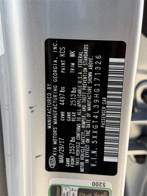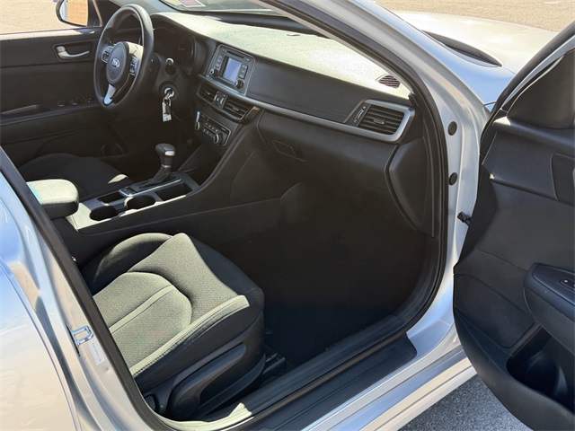 Recent Arrival!Odometer is 1368 miles below market average!25/36 City/Highway MPGSparkling Silver 2017 Kia Optima LX FWD 6-Speed Automatic with Sportmatic 2.4L I4 DGI DOHC Black Cloth.If you don't drive here, you can't save here!Awards: * 2017 IIHS Top Safety Pick * 2017 KBB.com Best Family Sedans * 2017 KBB.com 10 Best Sedans Under $25,000 * 2017 KBB.com 10 Most Awarded Cars * 2017 KBB.com 10 Most Comfortable Cars Under $30,000 * 2017 KBB.com 10 Most Awarded BrandsPrice may not include recon fee. Black Cloth, 16" Alloy Wheels, 4-Wheel Disc Brakes, 6 Speakers, ABS brakes, Air Conditioning, Alloy wheels, AM/FM radio: SiriusXM, Anti-whiplash front head restraints, Brake assist, Bumpers: body-color, Carpeted Floor Mats, CD player, Cloth Seat Trim w/Yes Essentials, Delay-off headlights, Driver door bin, Driver vanity mirror, Dual front impact airbags, Dual front side impact airbags, Electronic Stability Control, Exterior Parking Camera Rear, Four wheel independent suspension, Front anti-roll bar, Front Bucket Seats, Front Center Armrest, Front reading lights, Fully automatic headlights, Illuminated entry, Knee airbag, Low tire pressure warning, Occupant sensing airbag, Outside temperature display, Overhead airbag, Overhead console, Panic alarm, Passenger door bin, Passenger vanity mirror, Power door mirrors, Power steering, Power windows, Radio data system, Radio: AM/FM/CD/MP3/SiriusXM Audio System, Rear anti-roll bar, Rear seat center armrest, Rear window defroster, Remote keyless entry, Security system, Speed control, Speed-sensing steering, Split folding rear seat, Steering wheel mounted audio controls, Tachometer, Telescoping steering wheel, Tilt steering wheel, Traction control, Trip computer, Turn signal indicator mirrors, and Variably intermittent wipers.