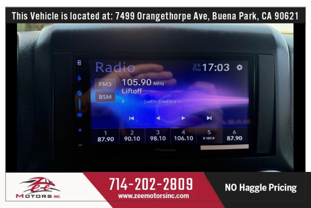 THIS VEHICLE IS LOCATED AT OUR BUENA PARK LOCATION: 7479 ORANGETHORPE AVE, BUENA PARK CA 90621. Please Call us at 657-255-4555 or 714-202-2809 or email us at SALES@ZEEMOTORSINC.COM To Check Availability.�* 1-Owner.* Clean Title.�* Passed Safety inspection and Smog Check.Attention to all buyers: All special prices are cash price and it does not include sales tax, license and registration fee, documentation fee, smog fee or any dealer add-ons / accessories. Additional financing charges may apply on approved credit.�While great effort is made to ensure the accuracy of the information provided on this site, errors do occur so please verify information with a team member. This is easily done by contacting us via phone or email (Call or Text 657-346-8544) All vehicles are equipped with an anti-theft/GPS system. Device cost not included in advertised price unless otherwise stated. See dealer for details and final pricing.* All vehicles offered by Zee Motors Inc. are sold strictly AS-IS, with no dealer warranty expressed or implied, unless otherwise stated in writing.Zee Motors Inc. makes every reasonable effort to present vehicles accurately; however, we do not guarantee the accuracy of vehicle condition, mileage, specifications, equipment, or history. All information provided is for general reference only and may be subject to errors or omissions.* It is the buyer's sole responsibility to independently inspect the vehicle and verify all aspects of its condition, including but not limited to mechanical performance, cosmetic condition, features, options, and prior history, prior to purchase. By completing a purchase, the buyer acknowledges full satisfaction with the vehicle's condition.* For added protection, Zee Motors Inc. also recommends purchasing an optional service contract (extended warranty) through one of our trusted third-party providers. These contracts are not included unless specifically purchased.* We strongly recommend that all customers obtain a third-party pre-purchase inspection (PPI). Inspections are available within a 3-mile radius of the dealership and must be approved and scheduled through Zee Motors Inc.*Zee Motors Inc. reserves the right to deny any claims, requests, or disputes regarding vehicle condition or performance after the sale has been completed, as all used vehicles are sold AS-IS and final.