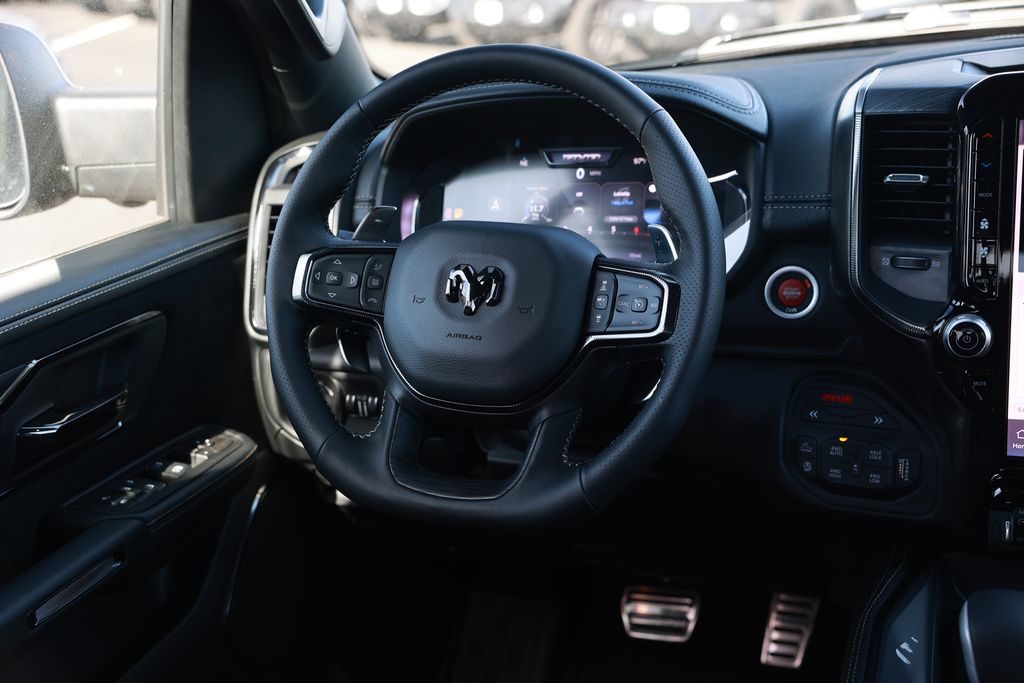Elevate your driving experience with this exceptional 2026 Ram 1500 RHO. Boasting a powerful 3.0L I6 engine paired with an 8-Speed Automatic transmission and 4WD, this truck is engineered to tackle any terrain with confidence. Featuring a sleek Black exterior, this Ram 1500 RHO delivers a bold and sophisticated presence on the road.- Quick Order Package 22Y RHOWith its impressive fuel efficiency, this Ram 1500 RHO achieves an EPA-estimated 14 MPG in the city and 16 MPG on the highway, making it a practical choice for your daily commute and weekend adventures.Elevate your driving experience with this exceptional 2026 Ram 1500 RHO. Boasting a powerful 3.0L I6 engine paired with an 8-Speed Automatic transmission and 4WD, this truck is engineered to tackle any terrain with confidence. Featuring a sleek Black exterior, this Ram 1500 RHO delivers a bold and sophisticated presence on the road.Designed with your comfort and convenience in mind, this Ram 1500 RHO is equipped with a wealth of premium features, including:- 10 Speakers- Uconnect 5 Navigation with 12.0" Display- Adaptive Suspension- Auto-Dimming Exterior Driver Mirror- Heated Steering Wheel- Leather-Trimmed Bucket Seats- Power Passenger Seat- Split Folding Rear Seat- Exterior Parking Camera Rear- GPS NavigationExperience the ultimate in capability, technology, and style with this exceptional 2026 Ram 1500 RHO. Visit our showroom today and let us demonstrate how this truck can elevate your driving experience.