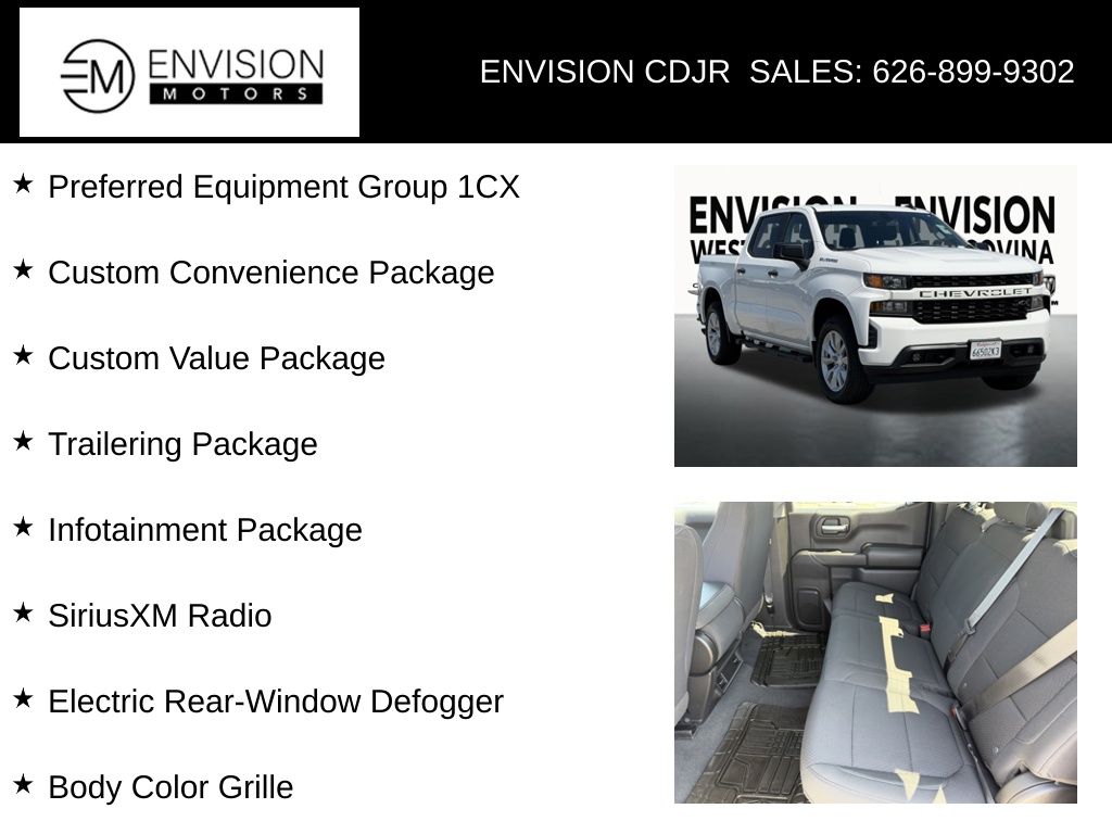 WE SPECIALIZE IN ALL CREDIT PROFILES! See what we can do for you! Call to find out (626) 899-9302.CARFAX One-Owner. Clean CARFAX.Odometer is 18957 miles below market average! 3.5" Monochromatic Display Driver Info Center, Body Color Grille, Custom Convenience Package, Custom Value Package, Electric Rear-Window Defogger, Infotainment Package, LED Cargo Area Lighting, Preferred Equipment Group 1CX, SiriusXM Radio, Trailering Package.Summit White2022 Chevrolet Silverado 1500 LTD Custom RWD 8-Speed Automatic 2.7L Turbo**********All Pricing and Advertised Prices for any/all vehicles offered for sale does not include dealer installed accessories which can be purchased for an additional cost.********** The Factory Rebates may not be available on this vehicle if you elect to take advantage of a Special Alternative APR or Special Lease program. Some Factory Rebates are California Resident specific and may vary for residents of other states. NO sales to Dealers, Brokers or Exporters. For out of state purchase, customers must be present to purchase. If shipping is required, dealership must facilitate; no exceptions. Please contact us for special Multi-Vehicle or Fleet pricing. Prices are plus government fees and taxes, any finance charges, $85 documentary fee, $29 electronic registration fee, any emission testing charge and $1.75 per new tire state tire fee. *** We make every effort to provide accurate information, but please verify before purchasing. Leasing & financing available on approved credit. Trade-ins accepted. Subject to prior sale.