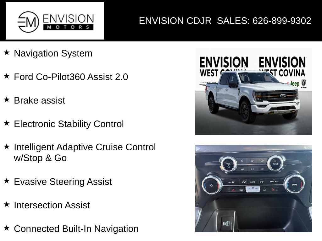 WE SPECIALIZE IN ALL CREDIT PROFILES! See what we can do for you! Call to find out (626) 899-9302.Odometer is 30300 miles below market average! 4WD, Brake assist, Connected Built-In Navigation, Electronic Stability Control, Evasive Steering Assist, Ford Co-Pilot360 Assist 2.0, Intelligent Adaptive Cruise Control w/Stop & Go, Intersection Assist, Navigation System, Speed Sign Recognition.Oxford White2023 Ford F-150 Tremor 4WD 10-Speed Automatic 3.5L V6 EcoBoost**********All Pricing and Advertised Prices for any/all vehicles offered for sale does not include dealer installed accessories which can be purchased for an additional cost.********** The Factory Rebates may not be available on this vehicle if you elect to take advantage of a Special Alternative APR or Special Lease program. Some Factory Rebates are California Resident specific and may vary for residents of other states. NO sales to Dealers, Brokers or Exporters. For out of state purchase, customers must be present to purchase. If shipping is required, dealership must facilitate; no exceptions. Please contact us for special Multi-Vehicle or Fleet pricing. Prices are plus government fees and taxes, any finance charges, $85 documentary fee, $29 electronic registration fee, any emission testing charge and $1.75 per new tire state tire fee. *** We make every effort to provide accurate information, but please verify before purchasing. Leasing & financing available on approved credit. Trade-ins accepted. Subject to prior sale.