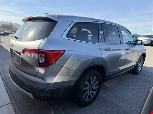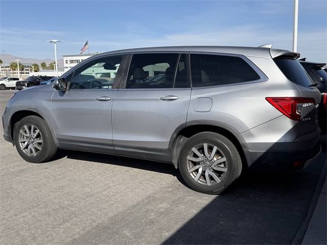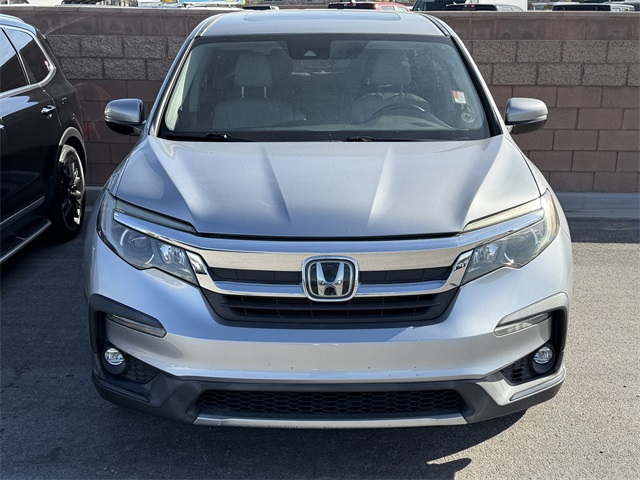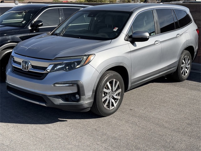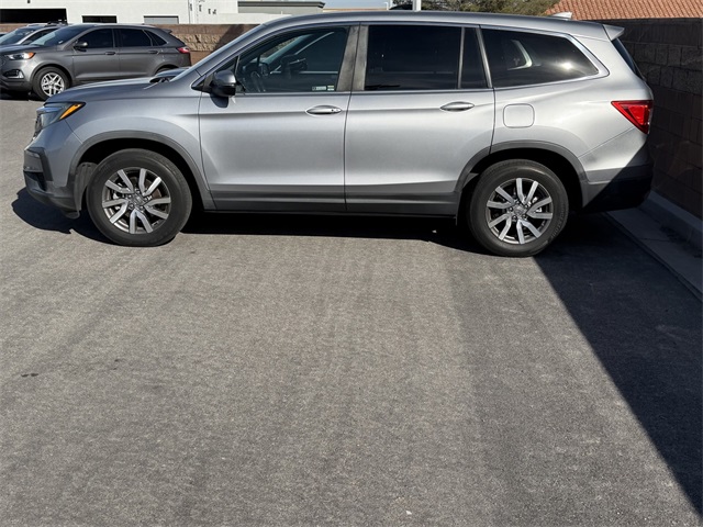 Recent Arrival!CARFAX One-Owner.Priced below KBB Fair Purchase Price!Odometer is 49906 miles below market average!19/27 City/Highway MPGSilver 2019 Honda Pilot EX-L FWD 6-Speed Automatic 3.5L V6 24V SOHC i-VTECIf you don't drive here, you can't save here!Awards: * ALG Residual Value Awards, Residual Value AwardsPrice may not include recon fee. 18" Machine-Finished Alloy Wheels, 3rd row seats: split-bench, 4-Wheel Disc Brakes, 4.25 Axle Ratio, 7 Speakers, A/V remote: CabinControl, ABS brakes, Air Conditioning, Alloy wheels, AM/FM radio: SiriusXM, Apple CarPlay/Android Auto, Auto High-beam Headlights, Auto-dimming Rear-View mirror, Automatic temperature control, Blind Spot Information (BSI) System warning, Brake assist, Bumpers: body-color, Delay-off headlights, Driver door bin, Driver vanity mirror, Dual front impact airbags, Dual front side impact airbags, Electronic Stability Control, Emergency communication system: HondaLink Assist, Exterior Parking Camera Rear, Forward collision: Collision Mitigation Braking System (CMBS) + FCW mitigation, Four wheel independent suspension, Front anti-roll bar, Front Bucket Seats, Front Center Armrest, Front dual zone A/C, Front fog lights, Front reading lights, Fully automatic headlights, Garage door transmitter: HomeLink, Heated door mirrors, Heated Front Bucket Seats, Heated front seats, Illuminated entry, Lane departure: Lane Keeping Assist System (LKAS) active, Leather Shift Knob, Leather-Trimmed Seats, Low tire pressure warning, Memory seat, Occupant sensing airbag, Outside temperature display, Overhead airbag, Overhead console, Panic alarm, Passenger door bin, Passenger vanity mirror, Power door mirrors, Power driver seat, Power Liftgate, Power moonroof, Power passenger seat, Power steering, Power windows, Radio data system, Radio: AM/FM Audio System, Rear air conditioning, Rear anti-roll bar, Rear reading lights, Rear seat center armrest, Rear window defroster, Rear window wiper, Reclining 3rd row seat, Remote keyless entry, Security system, Speed control, Speed-sensing steering, Speed-Sensitive Wipers, Split folding rear seat, Spoiler, Steering wheel mounted audio controls, Tachometer, Telescoping steering wheel, Tilt steering wheel, Traction control, Trip computer, Turn signal indicator mirrors, and Variably intermittent wipers.