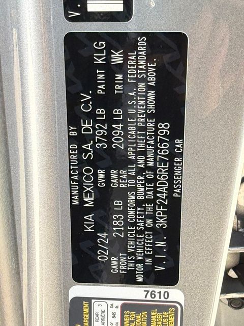 Recent Arrival!CARFAX One-Owner.Odometer is 25455 miles below market average!28/39 City/Highway MPGSteel Gray 2024 Kia Forte LXS FWD CVT 2.0L I4 MPIIf you don't drive here, you can't save here!Price may not include recon fee. 16" x 6.5J Alloy Wheels, 4 Speakers, 4-Wheel Disc Brakes, ABS brakes, Air Conditioning, Alloy wheels, AM/FM radio, Apple CarPlay & Android Auto, Auto High-beam Headlights, Brake assist, Bumpers: body-color, Cloth Seat Trim, Delay-off headlights, Driver door bin, Driver vanity mirror, Dual front impact airbags, Dual front side impact airbags, Electronic Stability Control, Exterior Parking Camera Rear, Front anti-roll bar, Front Bucket Seats, Front Center Armrest, Front reading lights, Front wheel independent suspension, Fully automatic headlights, Illuminated entry, Low tire pressure warning, Occupant sensing airbag, Outside temperature display, Overhead airbag, Overhead console, Panic alarm, Passenger door bin, Passenger vanity mirror, Power door mirrors, Power steering, Power windows, Radio data system, Radio: 8" Display Audio, Rear window defroster, Remote keyless entry, Security system, Speed control, Split folding rear seat, Steering wheel mounted audio controls, Tachometer, Telescoping steering wheel, Tilt steering wheel, Traction control, Trip computer, and Variably intermittent wipers.