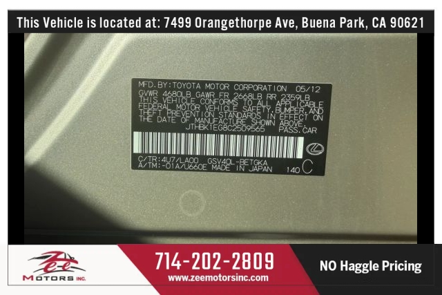 THIS VEHICLE IS LOCATED AT OUR BUENA PARK LOCATION: 7479 ORANGETHORPE AVE, BUENA PARK CA 90621. Please Call us at 657-255-4555 or 714-202-2809 or email us at SALES@ZEEMOTORSINC.COM To Check Availability.�* Clean Title.�* Passed Safety inspection and Smog Check.Attention to all buyers: All special prices are cash price and it does not include sales tax, license and registration fee, documentation fee, smog fee or any dealer add-ons / accessories. Additional financing charges may apply on approved credit.�While great effort is made to ensure the accuracy of the information provided on this site, errors do occur so please verify information with a team member. This is easily done by contacting us via phone or email (Call or Text 657-346-8544) All vehicles are equipped with an anti-theft/GPS system. Device cost not included in advertised price unless otherwise stated. See dealer for details and final pricing.* All vehicles offered by Zee Motors Inc. are sold strictly AS-IS, with no dealer warranty expressed or implied, unless otherwise stated in writing.Zee Motors Inc. makes every reasonable effort to present vehicles accurately; however, we do not guarantee the accuracy of vehicle condition, mileage, specifications, equipment, or history. All information provided is for general reference only and may be subject to errors or omissions.* It is the buyer's sole responsibility to independently inspect the vehicle and verify all aspects of its condition, including but not limited to mechanical performance, cosmetic condition, features, options, and prior history, prior to purchase. By completing a purchase, the buyer acknowledges full satisfaction with the vehicle's condition.* For added protection, Zee Motors Inc. also recommends purchasing an optional service contract (extended warranty) through one of our trusted third-party providers. These contracts are not included unless specifically purchased.* We strongly recommend that all customers obtain a third-party pre-purchase inspection (PPI). Inspections are available within a 3-mile radius of the dealership and must be approved and scheduled through Zee Motors Inc.*Zee Motors Inc. reserves the right to deny any claims, requests, or disputes regarding vehicle condition or performance after the sale has been completed, as all used vehicles are sold AS-IS and final.