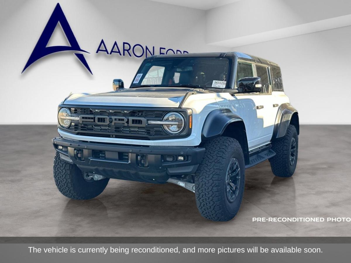 Experience the uncompromising power and exceptional style of the 2024 Ford Bronco Raptor. This off-road beast is engineered to conquer any terrain, delivering a thrilling driving experience that will leave you craving more.- Raptor Black Appearance Package: Matte black hood graphics, shadow black painted sport tube and windshield trim, matte black painted steel bash plates, low gloss black high coverage fender flares, and gloss black sideview mirror skull caps.- Blue with Black Onyx Leather-Trimmed/Vinyl Bucket Seats: 10-way power driver seat, 8-way front passenger seat, second-row armrest with beverage holders, and MOLLE strap system.- 17" Dark Carbonized Gray Alloy Painted Wheels: Beadlock capable forged design.- Shadow Black Painted Hard Top: Rear-window defroster and washer, sound-deadening headliner, and front-row top panels storage bag.- Connected Navigation: Seamlessly integrated with your smartphone for effortless route planning and real-time traffic updates.- Gloss Black Sideview Mirror Skull Caps: Adds a bold, distinctive touch to the exterior.- 4.7 Axle Ratio: Optimized for off-road performance and towing capabilities.Beneath the aggressive exterior lies a heart of pure power. The 3.0L EcoBoost V6 engine, paired with a 10-speed automatic transmission and 4WD, delivers a thrilling driving experience that will leave you in awe. With 15 MPG in the city and 16 MPG on the highway, this Bronco Raptor is ready to tackle any adventure you have in mind.Elevate your off-road experience with the 2024 Ford Bronco Raptor. Equipped with a wealth of premium features and uncompromising capability, this vehicle is the ultimate expression of rugged style and performance. Schedule a test drive today and discover the true power of the Bronco Raptor.