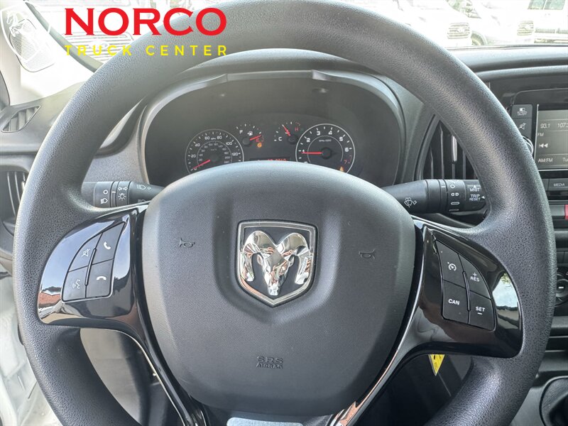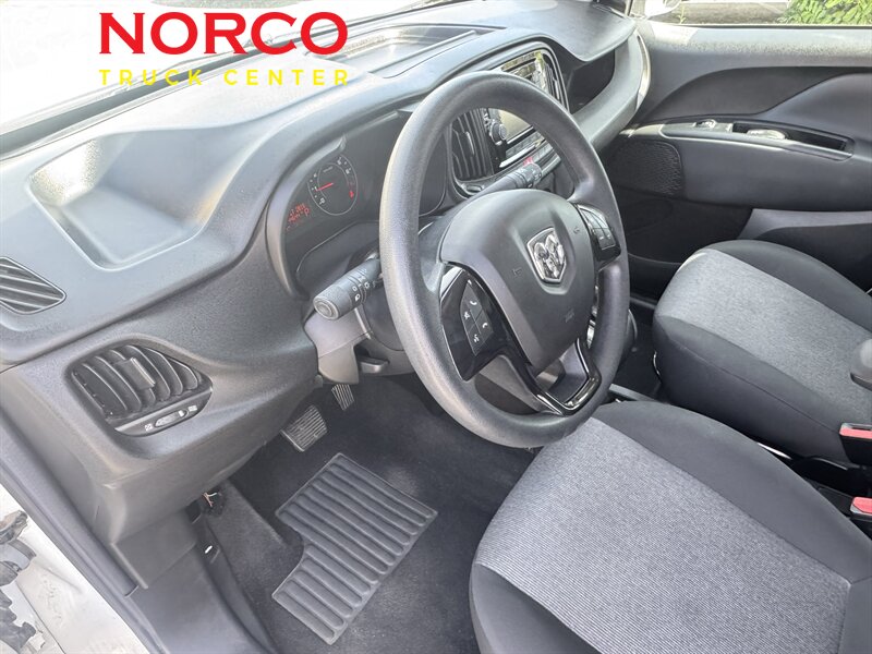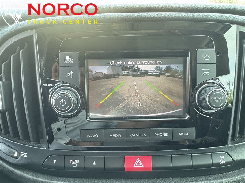 INSTALLED FEATURES: Air filtration, Front air conditioning, Front air conditioning zones: single, Airbag deactivation: occupant sensing passenger, Front airbags: dual, Knee airbags: driver, Side airbags: front, Side curtain airbags: front, Antenna type: mast, Auxiliary audio input: Bluetooth / jack / USB, Radio: AM/FM / touch screen display / voice operated, Speed sensitive volume control, Total speakers: 4, ABS: 4-wheel, Braking assist, Electronic brakeforce distribution, Front brake type: ventilated disc, Power brakes, Rear brake type: drum, Armrests: drivers seat, Floor material: carpet, Shift knob trim: urethane, Steering wheel trim: urethane, Assist handle: front / rear, Cargo area light, Cruise control, Cupholders: front, Multi-function remote: keyless entry / panic alarm / trunk release, One-touch windows: 2, Overhead console: front, Power outlet(s): 12V front / USB front, Power steering, Reading lights: front, Rearview mirror: manual day/night, Steering wheel: tilt and telescopic, Steering wheel mounted controls: cruise control / voice control, Storage: cargo tie-down anchors and hooks / door pockets, Sun visors, Body side moldings: black, Door handle color: black, Front bumper color: black, Grille color: black, License plate bracket: front, Mirror color: black, Rear bumper color: black, Rear trunk/liftgate: barn, Side door type: dual manual sliding, Window trim: black, Infotainment: Uconnect, Infotainment screen size: 5 in., Clock, Digital odometer, External temperature display, Fuel economy display: MPG / range, Gauge: tachometer, Powertrain hour meter, Trip odometer, Warnings and reminders: low battery / low fuel level / maintenance due, Daytime running lights, Headlights: auto delay off / halogen, Side mirror adjustments: manual / manual folding, Alternator: 160 amps, Battery: maintenance-free, Battery rating: 700 CCA, Battery saver, Emissions: 50 state, OEM roof height: undefined, Camera system: rearview, Crumple zones: front, Impact sensor: door unlock / fuel cut-off / post-collision safety system, Parking sensors: rear, Rearview monitor: in dash, Safety brake pedal system, Emergency locking retractors: front, Front seatbelts: 3-point, Seatbelt force limiters: front, Seatbelt pretensioners: front, Seatbelt warning sensor: front, Driver seat manual adjustments: 4 / reclining, Front headrests: 2 / adjustable, Front seat type: bucket, Passenger seat manual adjustments: 4 / reclining, Upholstery: cloth, Anti-theft system: vehicle immobilizer, Power door locks: auto-locking, Hill holder control, Roll stability control, Stability control, Traction control, Trailer stability control, Front shock type: twin-tube gas, Front spring type: coil, Front stabilizer bar: diameter 26 mm, Front struts: MacPherson, Front suspension classification: independent, Front suspension type: lower control arms, Rear shock type: twin-tube gas, Rear spring type: coil, Rear stabilizer bar: diameter 16 mm, Rear suspension classification: independent, Rear suspension type: multi-link, Driver assistance app: roadside assistance, Hands-free phone call integration: voice operated, Wireless data link: Bluetooth, Spare tire kit: inflator kit / tire sealant, Tire Pressure Monitoring System, Wheel covers: partial, Wheels: steel, Front wipers: intermittent, Power windows: front