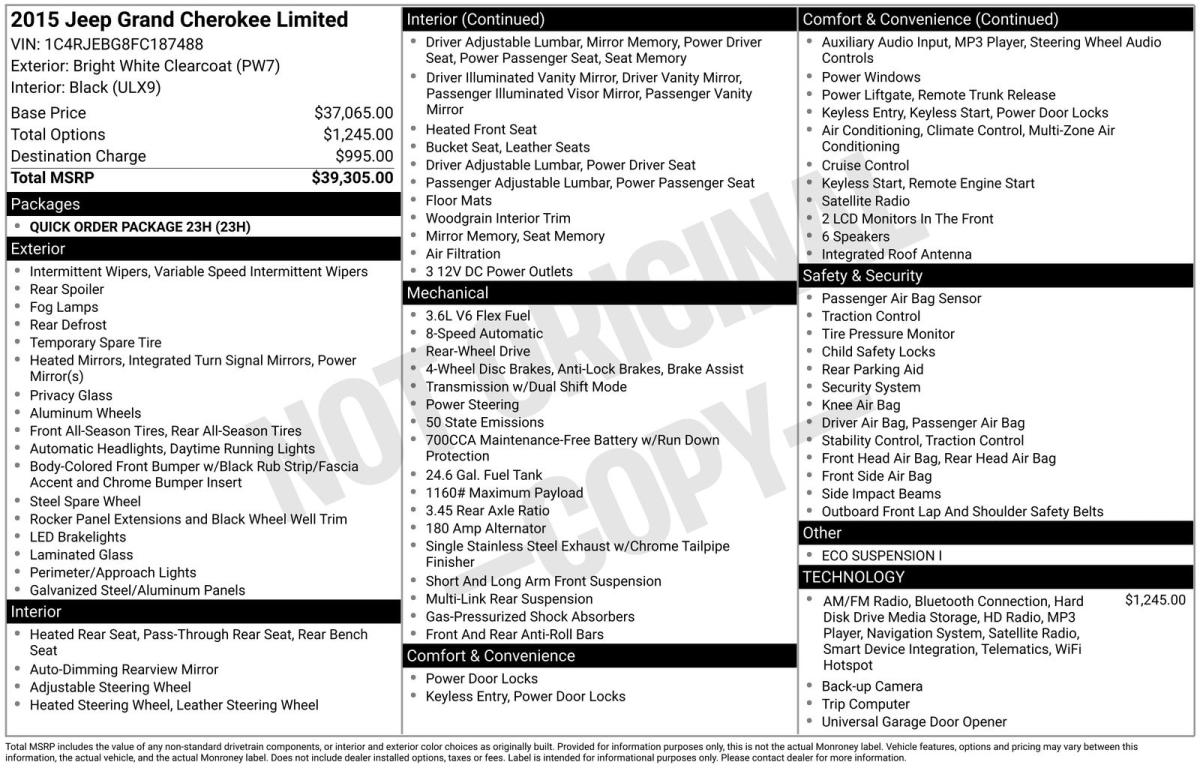 2015 Jeep Grand Cherokee Limited Recent Arrival! To see more quality vehicles like this one right just click on AaronFordofPoway.com or dial (858) 748-1400.CARFAX One-Owner. Clean CARFAX. Reviews: * The Jeep Grand Cherokee SUV comes closest to having it all: a high-tech and comfortable 5-passenger interior, genuine off-road capability and an array of engine choices. If you take the road less traveled, this is your ride. Source: KBB.com * Strong and fuel-efficient engine lineup, including diesel V6; upscale interior; plenty of luxury and technology-oriented features; irrefutable off-road ability; outlandish SRT model. Source: Edmunds