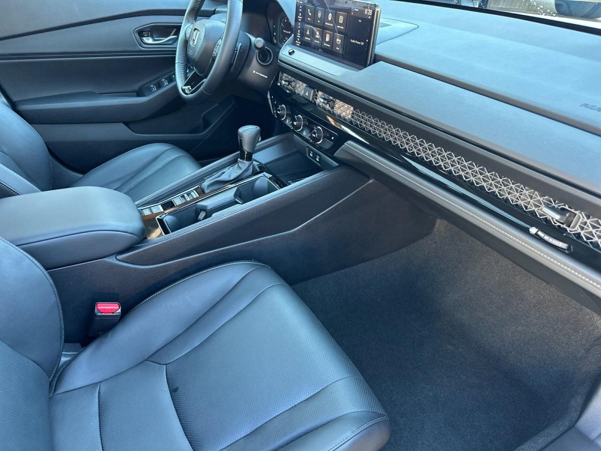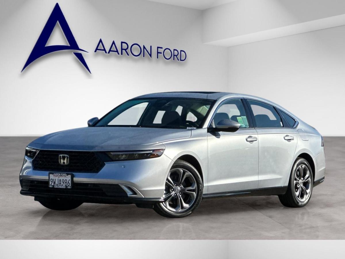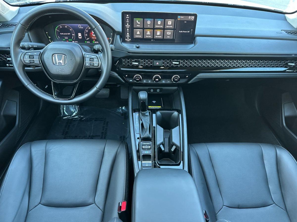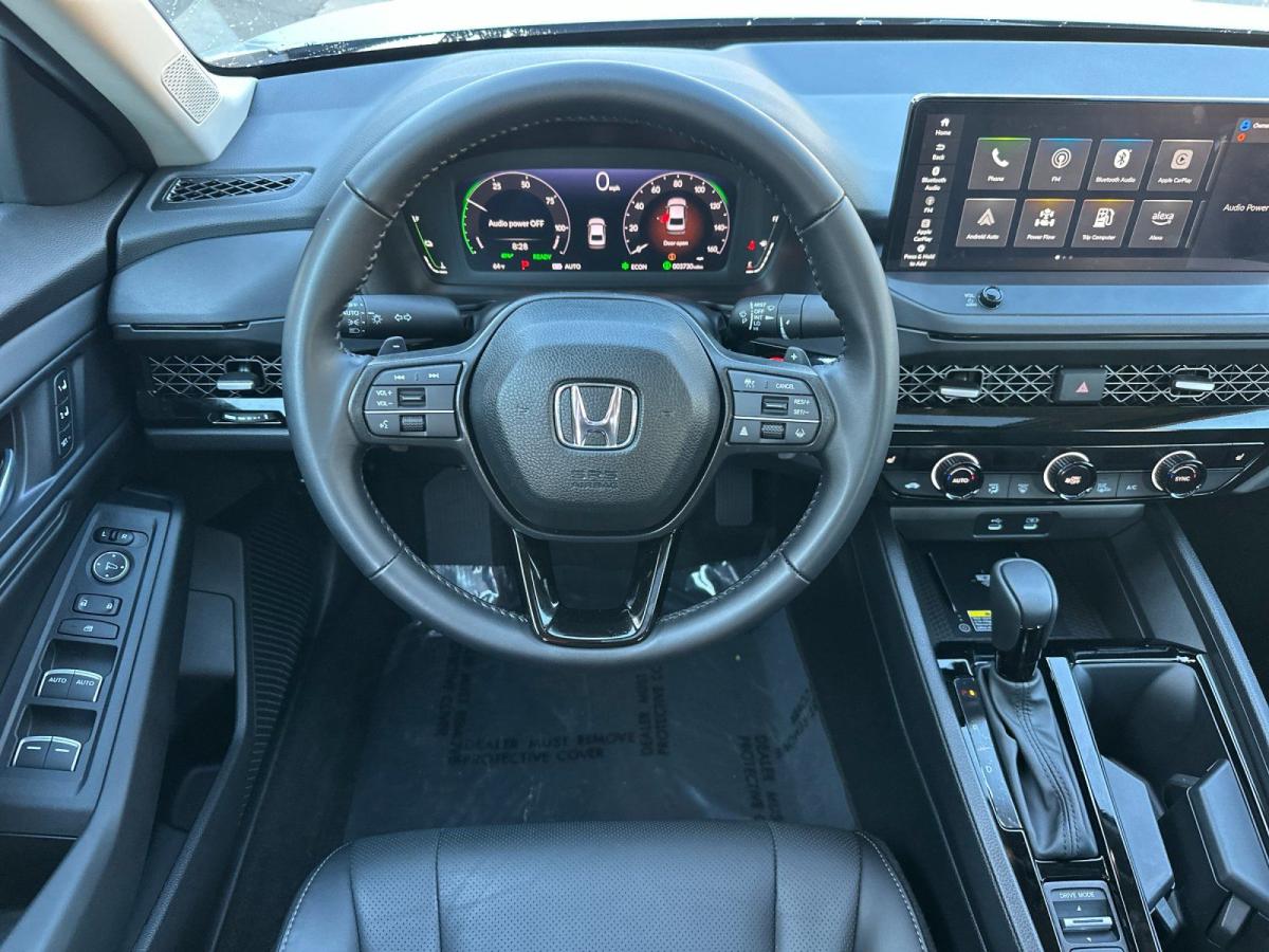 Elevate your driving experience with this exceptional 2025 Honda Accord Hybrid EX-L. Boasting a striking Solar Silver Metallic exterior and a well-appointed interior, this sedan offers a harmonious blend of style, technology, and efficiency.- Memory seat- Remote keyless entry- Power moonroof- Blind Spot Information (BSI) System warning- Lane Keeping Assist System (LKAS)- Adaptive Cruise Control (ACC) with Low-Speed Follow- Apple CarPlay/Android AutoPowered by a 2.0L I4 DOHC 16V engine and eCVT transmission, this Accord Hybrid delivers an impressive 51 city/44 highway MPG, making it an exceptional choice for the eco-conscious driver. The vehicle's advanced hybrid powertrain seamlessly combines electric and gasoline power, providing a smooth and responsive driving experience.Step inside the cabin and you'll be surrounded by a wealth of premium features that elevate your daily commute. Enjoy the comfort of heated front seats, a power-adjustable driver's seat, and a leather-wrapped steering wheel. The 180-Watt audio system, complete with Apple CarPlay and Android Auto, keeps you connected and entertained.Safety is a top priority in this Accord Hybrid, with a comprehensive suite of advanced driver-assistance technologies. The Blind Spot Information (BSI) System, Lane Keeping Assist System (LKAS), and Adaptive Cruise Control (ACC) with Low-Speed Follow provide an added layer of confidence and protection on the road.Elevate your driving experience with this exceptional 2025 Honda Accord Hybrid EX-L. With its impressive fuel efficiency, premium features, and advanced safety technologies, this sedan is the perfect blend of style, comfort, and performance. Visit our showroom today to experience the Accord Hybrid firsthand and discover how it can enhance your daily driving.