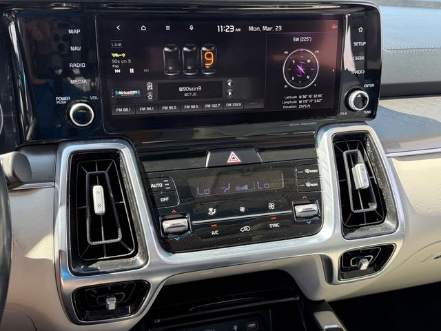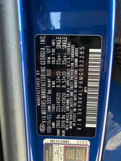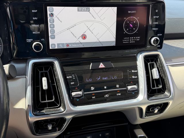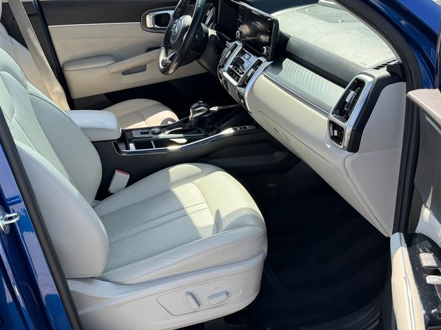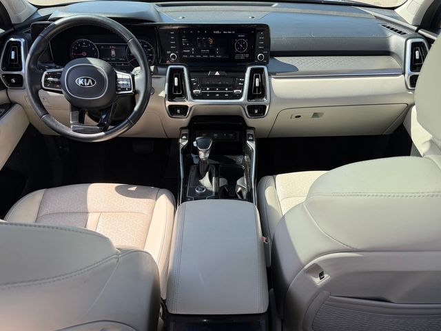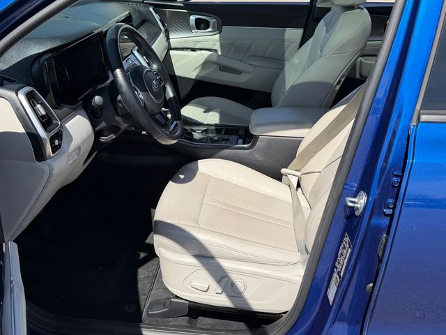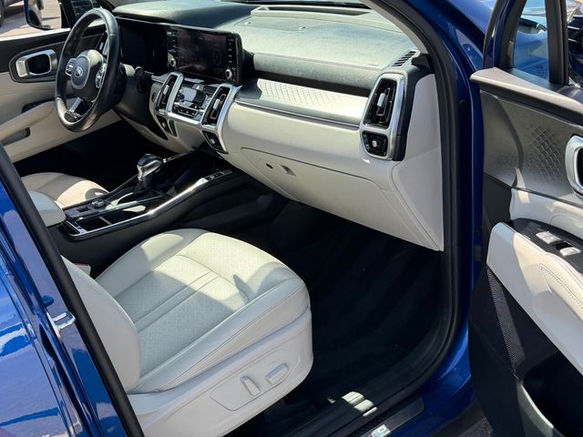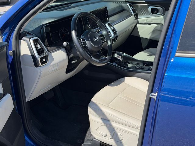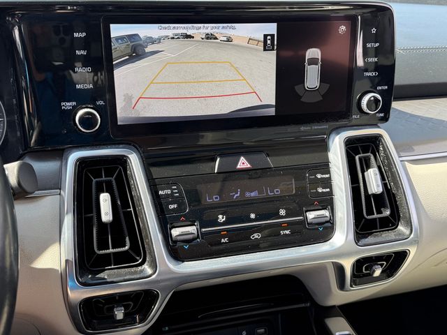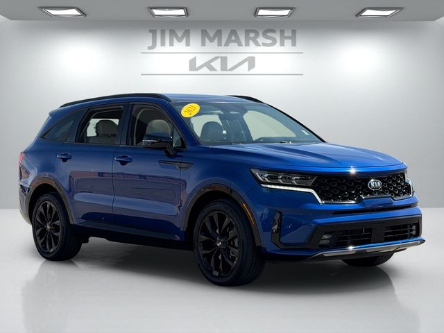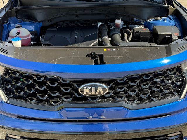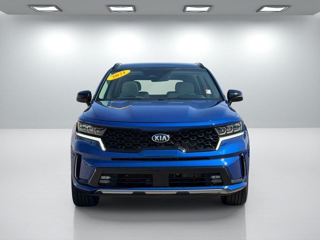 CARFAX One-Owner.Odometer is 11870 miles below market average!22/29 City/Highway MPGSapphire Blue 2021 Kia Sorento SX FWD 8-Speed DCT 2.5L I4 DGI Turbocharged DOHC 16V LEV3-ULEV70 281hpIf you don't drive here, you can't save here!Price may not include recon fee. 3.316 Axle Ratio, 3rd row seats: split-bench, 4-Wheel Disc Brakes, 6 Speakers, ABS brakes, Air Conditioning, Alloy wheels, AM/FM radio: SiriusXM, Apple CarPlay & Android Auto, Auto High-beam Headlights, Automatic temperature control, Brake assist, Bumpers: body-color, Cargo Net, Carpeted Floor Mats, Delay-off headlights, Driver door bin, Driver vanity mirror, Dual front impact airbags, Dual front side impact airbags, Electronic Stability Control, Emergency communication system: UVO link, Exterior Parking Camera Rear, Four wheel independent suspension, Front anti-roll bar, Front Bucket Seats, Front Center Armrest, Front dual zone A/C, Front fog lights, Front reading lights, Fully automatic headlights, Heated door mirrors, Heated Front Bucket Seats, Heated front seats, Illuminated entry, Knee airbag, Leather steering wheel, Low tire pressure warning, Navigation System, Occupant sensing airbag, Outside temperature display, Overhead airbag, Overhead console, Panic alarm, Passenger door bin, Passenger vanity mirror, Power door mirrors, Power driver seat, Power Liftgate, Power moonroof, Power passenger seat, Power steering, Power windows, Premium Leatherette Seat Trim, Radio data system, Radio: AM/FM Audio System w/Navigation, Rear air conditioning, Rear anti-roll bar, Rear reading lights, Rear window defroster, Rear window wiper, Remote keyless entry, Roof rack: rails only, Security system, Smart Key w/ Push Button and Remote Start, Speed control, Speed-sensing steering, Split folding rear seat, Spoiler, Steering wheel mounted audio controls, Tachometer, Telescoping steering wheel, Tilt steering wheel, Traction control, Trip computer, Turn signal indicator mirrors, Variably intermittent wipers, and Wheels: 20" Gloss Black Alloy.