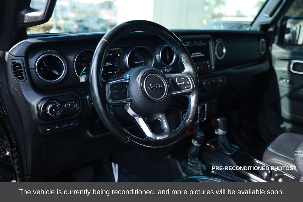 Discover the ultimate adventure-ready SUV with the 2022 Jeep Wrangler Unlimited Rubicon 4xe. This remarkable vehicle combines the legendary off-road capabilities of the Wrangler with the efficiency and performance of a plug-in hybrid powertrain, making it the perfect choice for those who seek a balance of rugged versatility and eco-conscious driving.Featuring a striking Black exterior, this Wrangler Unlimited Rubicon 4xe is equipped with a host of premium features that elevate the driving experience. Indulge in the luxurious comfort of the Black Leather Trimmed Bucket Seats, enhanced by the Premium Wrapped I/P Bezels, Leather Wrapped Shift Knob, and Premium Door Trim Panel. Stay connected and entertained with the Uconnect 4C Nav system, complete with an 8.4-inch display, 9-speaker audio, and seamless integration of your smartphone via Apple CarPlay and Android Auto.- Black 3-Piece Hard Top- Cold Weather Group (Heated Steering Wheel, Remote Start System, Heated Front Seats)- Safety Group (Blind Spot & Cross Path Detection, ParkSense Rear Park Assist System)- Navigation System- Quick Order Package 29VConquer the great outdoors with confidence, thanks to the Wrangler Unlimited Rubicon 4xe's impressive off-road capabilities. The robust 4-wheel drive system, Performance Suspension, and 17-inch Machined/Painted Black Alloy Wheels ensure exceptional traction and control, even in the most challenging terrains. Experience the thrill of the open road with the convenience of a plug-in hybrid powertrain, offering a remarkable blend of power and efficiency.Elevate your driving experience with the 2022 Jeep Wrangler Unlimited Rubicon 4xe. This exceptional SUV is the perfect companion for your next adventure, whether it's exploring rugged trails or navigating the daily commute. Visit our showroom today and let us demonstrate why this Wrangler Unlimited Rubicon 4xe is the ultimate choice for the discerning driver.