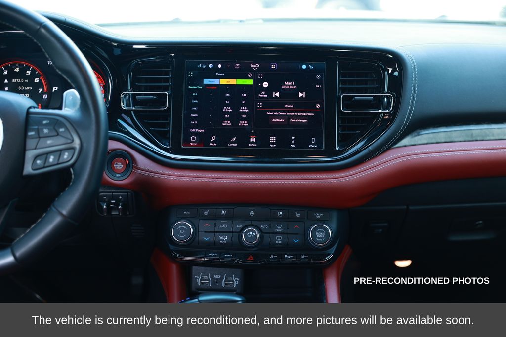 Discover the ultimate driving experience with the 2023 Dodge Durango SRT Hellcat. This exceptional SUV is a true testament to power and performance, delivering an unparalleled driving dynamic that will captivate your senses.Boasting a 6.2L Supercharged HEMI V8 SRT engine, this Durango SRT Hellcat is a force to be reckoned with, generating an impressive 710 horsepower and 645 lb-ft of torque. Paired with an 8-speed automatic transmission and an advanced all-wheel-drive system, this SUV offers exceptional handling and control, ensuring a thrilling ride no matter the road conditions.- Quick Order Package 2XY Hellcat Premium- Black Package- 19 harman/kardon Amplified Speakers with Subwoofer- 825 Watt Amplifier- Navigation System- Adaptive Cruise Control with Stop- Full Speed Forward Collision Warning Plus- Lane Departure Warning PlusStep inside the Durango SRT Hellcat and you'll be surrounded by a premium, driver-focused cabin. Luxurious Laguna leather seats, carbon fiber accents, and a state-of-the-art Uconnect 5 infotainment system with a 10.1-inch display create an environment that is both sophisticated and technologically advanced.The exterior of the Durango SRT Hellcat is equally impressive, with a bold and aggressive stance that commands attention. The Black Package adds a touch of menace, with satin black exterior details and 20-inch Lights Out aluminum wheels that give this SUV a truly unique and captivating appearance.Whether you're carving through winding roads or tackling the daily commute, the 2023 Dodge Durango SRT Hellcat is a true performance SUV that will elevate your driving experience. With its uncompromising power, exceptional handling, and premium features, this Durango is a must-see for any driving enthusiast.We invite you to visit our showroom and experience the thrill of the Durango SRT Hellcat for yourself. Let us demonstrate how this exceptional SUV can transform the way you approach the road. Contact us today to schedule a test drive and discover the true meaning of driving passion.