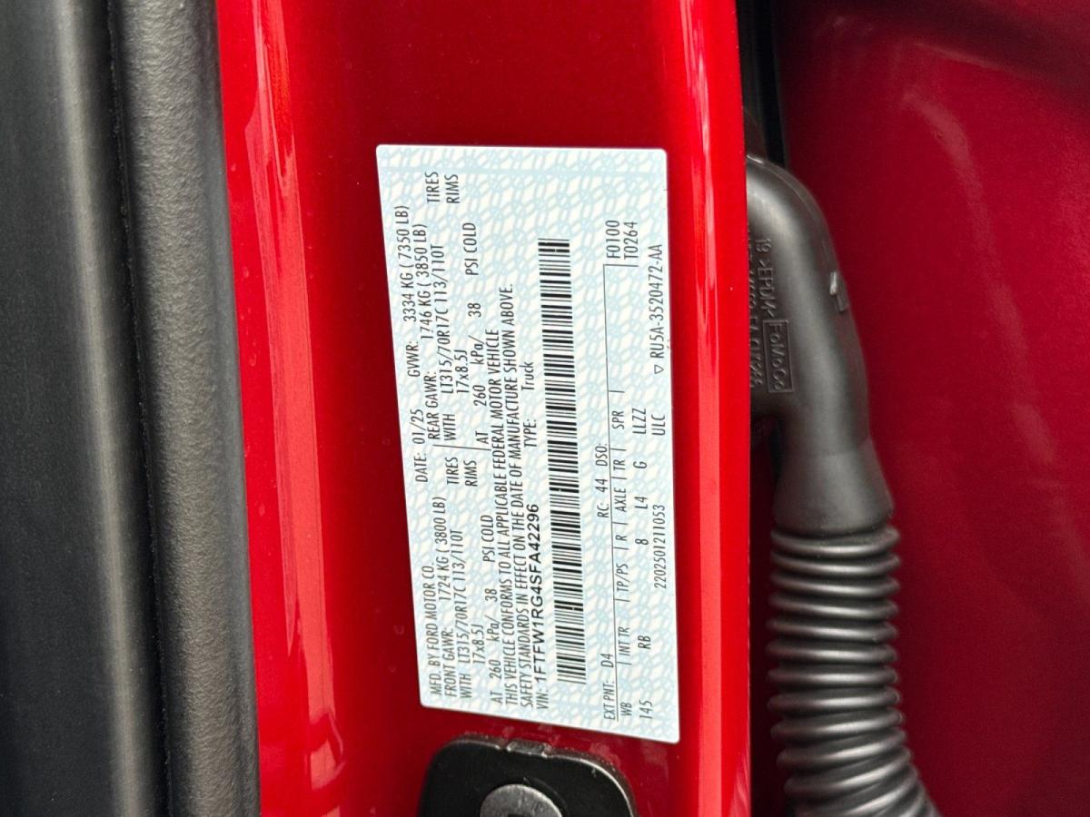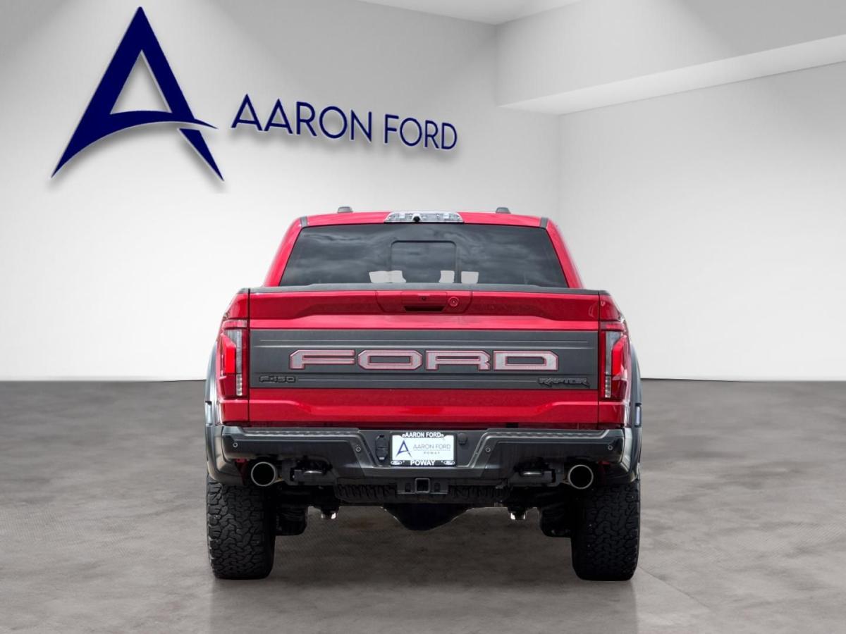 Experience the ultimate in power, capability, and style with the 2025 Ford F-150 Raptor. This rugged and refined truck is built to conquer any terrain, while delivering an unparalleled driving experience that will leave you in awe.Featuring a - Twin Panel Moonroof - Tough Bed Spray-In Bedliner - Rapid Red Metallic Tinted Clearcoat exterior - this Raptor is equipped with the premium features you demand. The Equipment Group 801A Standard package further enhances your driving experience with a suite of advanced technologies, including:- Navigation system: Connected Navigation- Radio: B&O Unleashed Sound System by Bang & Olufsen- SYNC 4 with Enhanced Voice RecognitionBeneath the bold and aggressive exterior lies a heart of pure power. The 3.5L V6 EcoBoost engine, paired with a 10-Speed Automatic transmission and 4WD, delivers an exhilarating performance that will leave you craving the open road. With an EPA-estimated 15 MPG in the city and 18 MPG on the highway, you can conquer your adventures with confidence.The attention to detail is evident throughout the Raptor's interior, where premium materials and cutting-edge technology converge. Enjoy the comfort of heated and ventilated front seats, a heated steering wheel, and a Heads-Up Display that keeps vital information within your line of sight. The 14-speaker B&O Unleashed Sound System by Bang & Olufsen will immerse you in a concert-quality audio experience, while the SYNC 4 with Enhanced Voice Recognition allows you to seamlessly control your infotainment and connectivity.Safety is paramount in the Raptor, with a suite of advanced driver-assistance features that include Collision Warning System, Parking Sensors, and a Lane Departure Warning System. The Electronic Locking Differential and 4-Wheel Disc Brakes with ABS ensure confident control in any driving condition.Whether you're tackling the toughest terrain or navigating the daily commute, the 2025 Ford F-150 Raptor is the ultimate expression of power, capability, and refinement. Experience the difference for yourself and schedule a test drive today. We're confident you'll be impressed by this exceptional vehicle.