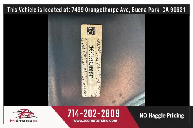 THIS VEHICLE IS LOCATED AT OUR BUENA PARK LOCATION: 7479 ORANGETHORPE AVE, BUENA PARK CA 90621. Please Call us at 657-255-4555 or 714-202-2809 or email us at SALES@ZEEMOTORSINC.COM To Check Availability.***** Very clean inside and out ***** New valve cover gasket ***** Fresh oil change ***** Brand new tires all around ***** Passed inspection **** Passed SMOG and ready to go! ******�* 1-Owner.* Clean Title.�* Passed Safety inspection and Smog Check.Attention to all buyers: All special prices are cash price and it does not include sales tax, license and registration fee, documentation fee, smog fee or any dealer add-ons / accessories. Additional financing charges may apply on approved credit.�While great effort is made to ensure the accuracy of the information provided on this site, errors do occur so please verify information with a team member. This is easily done by contacting us via phone or email (Call or Text 657-346-8544) All vehicles are equipped with an anti-theft/GPS system. Device cost not included in advertised price unless otherwise stated. See dealer for details and final pricing.* All vehicles offered by Zee Motors Inc. are sold strictly AS-IS, with no dealer warranty expressed or implied, unless otherwise stated in writing.Zee Motors Inc. makes every reasonable effort to present vehicles accurately; however, we do not guarantee the accuracy of vehicle condition, mileage, specifications, equipment, or history. All information provided is for general reference only and may be subject to errors or omissions.* It is the buyer's sole responsibility to independently inspect the vehicle and verify all aspects of its condition, including but not limited to mechanical performance, cosmetic condition, features, options, and prior history, prior to purchase. By completing a purchase, the buyer acknowledges full satisfaction with the vehicle's condition.* For added protection, Zee Motors Inc. also recommends purchasing an optional service contract (extended warranty) through one of our trusted third-party providers. These contracts are not included unless specifically purchased.* We strongly recommend that all customers obtain a third-party pre-purchase inspection (PPI). Inspections are available within a 3-mile radius of the dealership and must be approved and scheduled through Zee Motors Inc.*Zee Motors Inc. reserves the right to deny any claims, requests, or disputes regarding vehicle condition or performance after the sale has been completed, as all used vehicles are sold AS-IS and final.