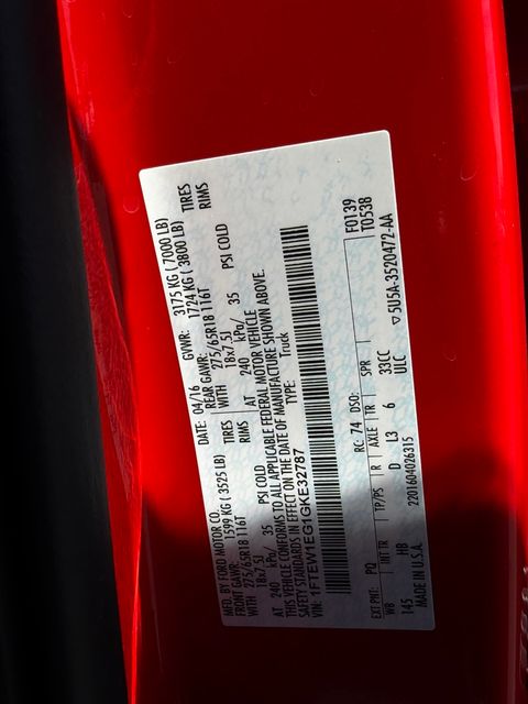 Priced below KBB Fair Purchase Price!Clean CARFAX.Race Red 2016 Ford F-150 Lariat 4WD 6-Speed Automatic Electronic 3.5L V6 4WD.See Ya in a KIA.Awards: * 2016 KBB.com Brand Image AwardsAll prices plus $495 Doc Fee (lowest fees in Las Vegas) Equipment Group 502A Luxury, FX4 Off-Road Package, Lariat Chrome Appearance Package (Chrome 3-Bar Style Grille w/Chrome Surround, Chrome Angular Step Bars, Chrome Door & Tailgate Handles w/Body-Color Bezel, Chrome Skull Caps on Exterior Mirrors, Single-Tip Chrome Exhaust, and Wheels: 18" Chrome-Like PVD), 4WD, 18" Machined-Aluminum Wheels, 4-Wheel Disc Brakes, 7 Speakers, ABS brakes, Adjustable pedals, Air Conditioning, Alloy wheels, AM/FM radio: SiriusXM, Auto-dimming door mirrors, Auto-dimming Rear-View mirror, Automatic temperature control, Brake assist, Bumpers: chrome, CD player, Compass, Delay-off headlights, Driver door bin, Driver vanity mirror, Dual front impact airbags, Dual front side impact airbags, Electronic Stability Control, Extended Range 36 Gallon Fuel Tank, Exterior Parking Camera Rear, Front anti-roll bar, Front Center Armrest w/Storage, Front dual zone A/C, Front fog lights, Front License Plate Bracket, Front reading lights, Front wheel independent suspension, Fully automatic headlights, Heated door mirrors, Heated front seats, Illuminated entry, Integrated Trailer Brake Controller, Leather-Trimmed 40/20/40 Front Seat, Low tire pressure warning, Memory seat, Occupant sensing airbag, Outside temperature display, Overhead airbag, Overhead console, Panic alarm, Passenger door bin, Passenger vanity mirror, Pedal memory, Power door mirrors, Power driver seat, Power passenger seat, Power steering, Power windows, Radio data system, Radio: Single-CD w/SiriusXM Satellite, Rear reading lights, Rear seat center armrest, Rear step bumper, Rear window defroster, Remote keyless entry, Security system, Speed control, Speed-sensing steering, Split folding rear seat, Spray-In Bedliner (Pre-Installed), Steering wheel mounted audio controls, SYNC 3, Tachometer, Tailgate Step w/Tailgate Lift Assist, Telescoping steering wheel, Tilt steering wheel, Traction control, Trip computer, Turn signal indicator mirrors, Twin Panel Moonroof, Variably intermittent wipers, Ventilated front seats, Voltmeter, and Wheel Well Liner (Pre-Installed)