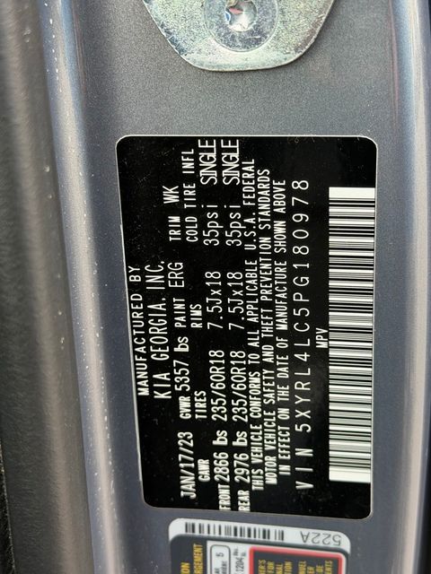 CARFAX One-Owner.Clean CARFAX.24/29 City/Highway MPGEverlasting Silver 2023 Kia Sorento S FWD 8-Speed Automatic 2.5L I4 DGI DOHC 16V LEV3-ULEV70 191hpSee Ya in a KIA.All prices plus $495 Doc Fee (lowest fees in Las Vegas) Panoramic Sunroof Package (LED Interior Lighting and Panoramic Power Sunroof w/Power Sunshade), 3.798 Axle Ratio, 3rd row seats: split-bench, 4-Wheel Disc Brakes, 6 Speakers, ABS brakes, Air Conditioning, Alloy wheels, AM/FM radio: SiriusXM, Apple CarPlay & Android Auto, Auto High-beam Headlights, Automatic temperature control, Brake assist, Bumpers: body-color, Delay-off headlights, Driver door bin, Driver vanity mirror, Dual front impact airbags, Dual front side impact airbags, Electronic Stability Control, Emergency communication system, Exterior Parking Camera Rear, Four wheel independent suspension, Front anti-roll bar, Front Bucket Seats, Front Center Armrest, Front dual zone A/C, Front reading lights, Fully automatic headlights, Heated door mirrors, Heated Front Bucket Seats, Heated front seats, Illuminated entry, Knee airbag, Leather Shift Knob, Leather steering wheel, Low tire pressure warning, Navigation System, Occupant sensing airbag, Outside temperature display, Overhead airbag, Overhead console, Panic alarm, Passenger door bin, Passenger vanity mirror, Power door mirrors, Power driver seat, Power steering, Power windows, Radio data system, Radio: AM/FM Audio System, Rear air conditioning, Rear anti-roll bar, Rear reading lights, Rear seat center armrest, Rear window defroster, Rear window wiper, Remote keyless entry, Roof rack: rails only, Security system, Smart Key w/ Push Button and Remote Start, Speed control, Speed-sensing steering, Split folding rear seat, Spoiler, Steering wheel mounted audio controls, SynTex Artificial Leather Seat Trim, Tachometer, Telescoping steering wheel, Tilt steering wheel, Traction control, Trip computer, Turn signal indicator mirrors, Variably intermittent wipers, and Wheels: 7.5J x 18" Machine-Finished Alloy.