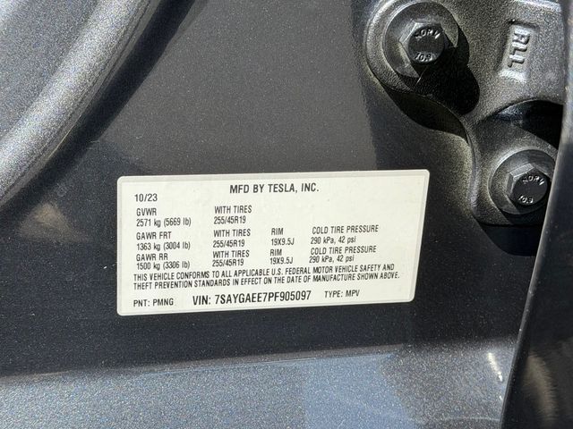 CARFAX One-Owner.Clean CARFAX.127/117 City/Highway MPGGray 2023 Tesla Model Y Long Range AWD 1-Speed Automatic Electric MotorSee Ya in a KIA.All prices plus $495 Doc Fee (lowest fees in Las Vegas) 14 Speakers, 4-Wheel Disc Brakes, 5 Seat Interior, 9.0 Axle Ratio, ABS brakes, Air Conditioning, Alloy wheels, Audio memory, Auto High-beam Headlights, Auto tilt-away steering wheel, Auto-dimming door mirrors, Auto-dimming Rear-View mirror, Automatic temperature control, Brake assist, Bumpers: body-color, Compass, Delay-off headlights, Driver door bin, Driver vanity mirror, Dual front impact airbags, Dual front side impact airbags, Electronic Stability Control, Emergency communication system, Exterior Parking Camera Rear, Four wheel independent suspension, Front anti-roll bar, Front Bucket Seats, Front Center Armrest, Front dual zone A/C, Front fog lights, Front reading lights, Fully automatic headlights, Genuine wood dashboard insert, Heated door mirrors, Heated front seats, Heated rear seats, Heated steering wheel, HVAC memory, Illuminated entry, Knee airbag, Lane Departure Warning System, Low tire pressure warning, Memory seat, Navigation System, Occupant sensing airbag, Outside temperature display, Overhead airbag, Passenger door bin, Passenger vanity mirror, Power door mirrors, Power driver seat, Power Liftgate, Power passenger seat, Power steering, Power windows, Premium Audio System, Radio data system, Rain sensing wipers, Rear reading lights, Rear seat center armrest, Rear window defroster, Security system, Speed control, Speed-sensing steering, Split folding rear seat, Steering wheel memory, Steering wheel mounted A/C controls, Steering wheel mounted audio controls, Telescoping steering wheel, Tilt steering wheel, Traction control, Trip computer, Variably intermittent wipers, Vegan Leather Seat Trim, and Wheels: 19" x 9.5" Gemini.