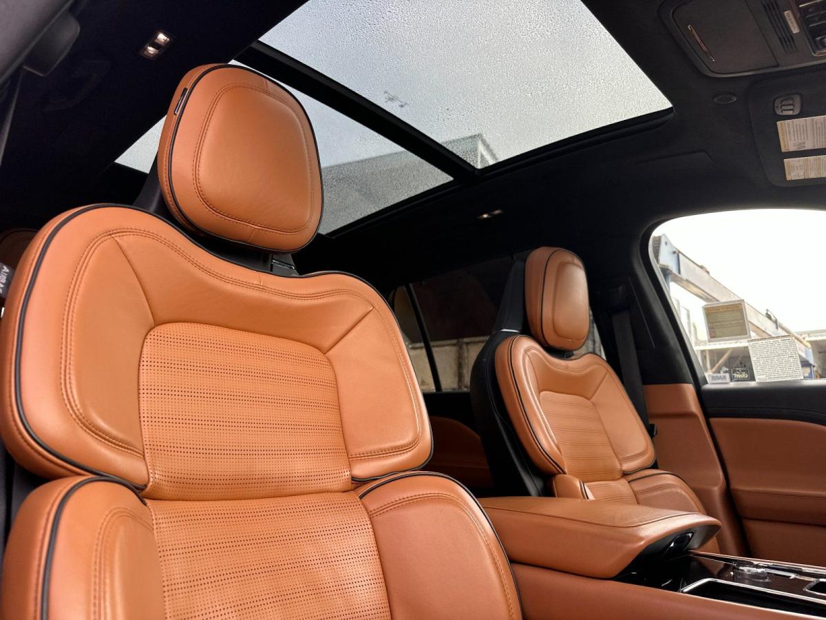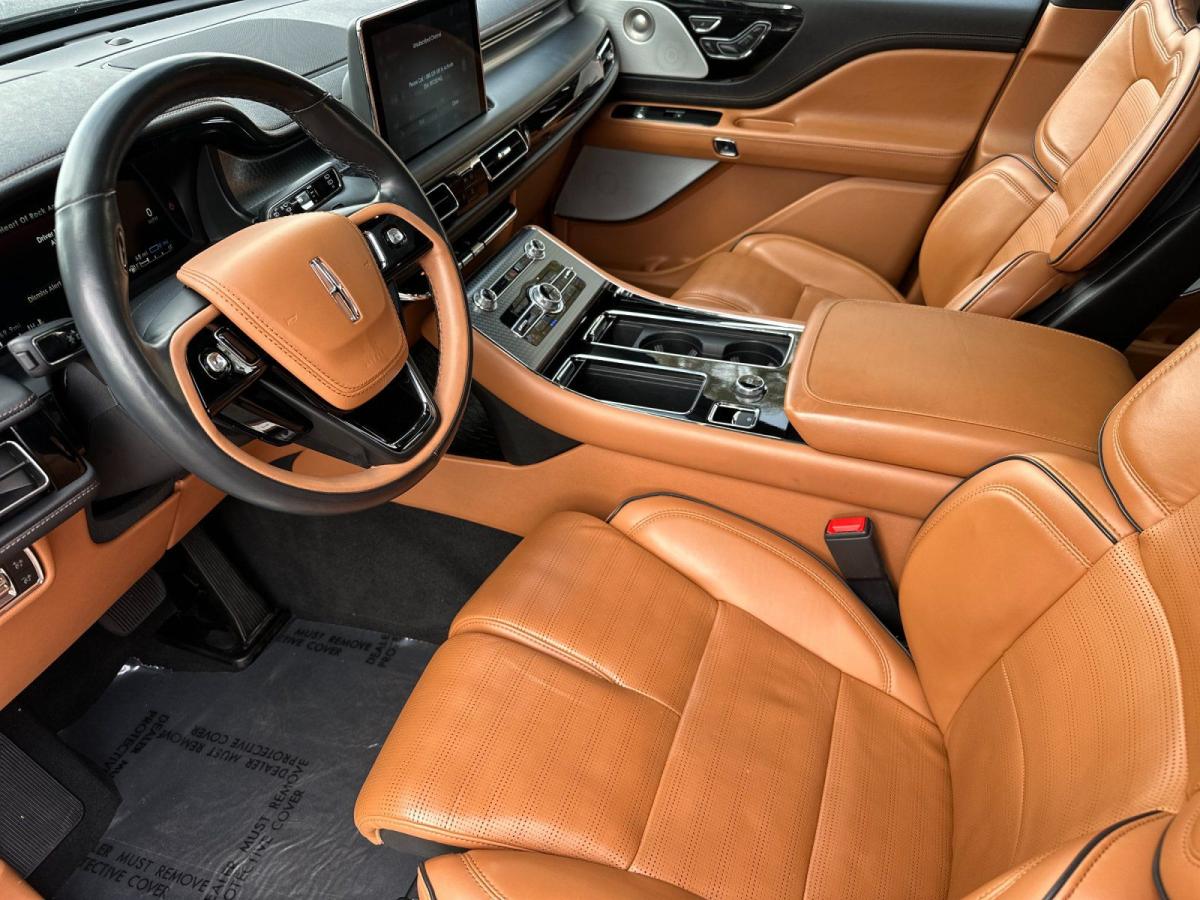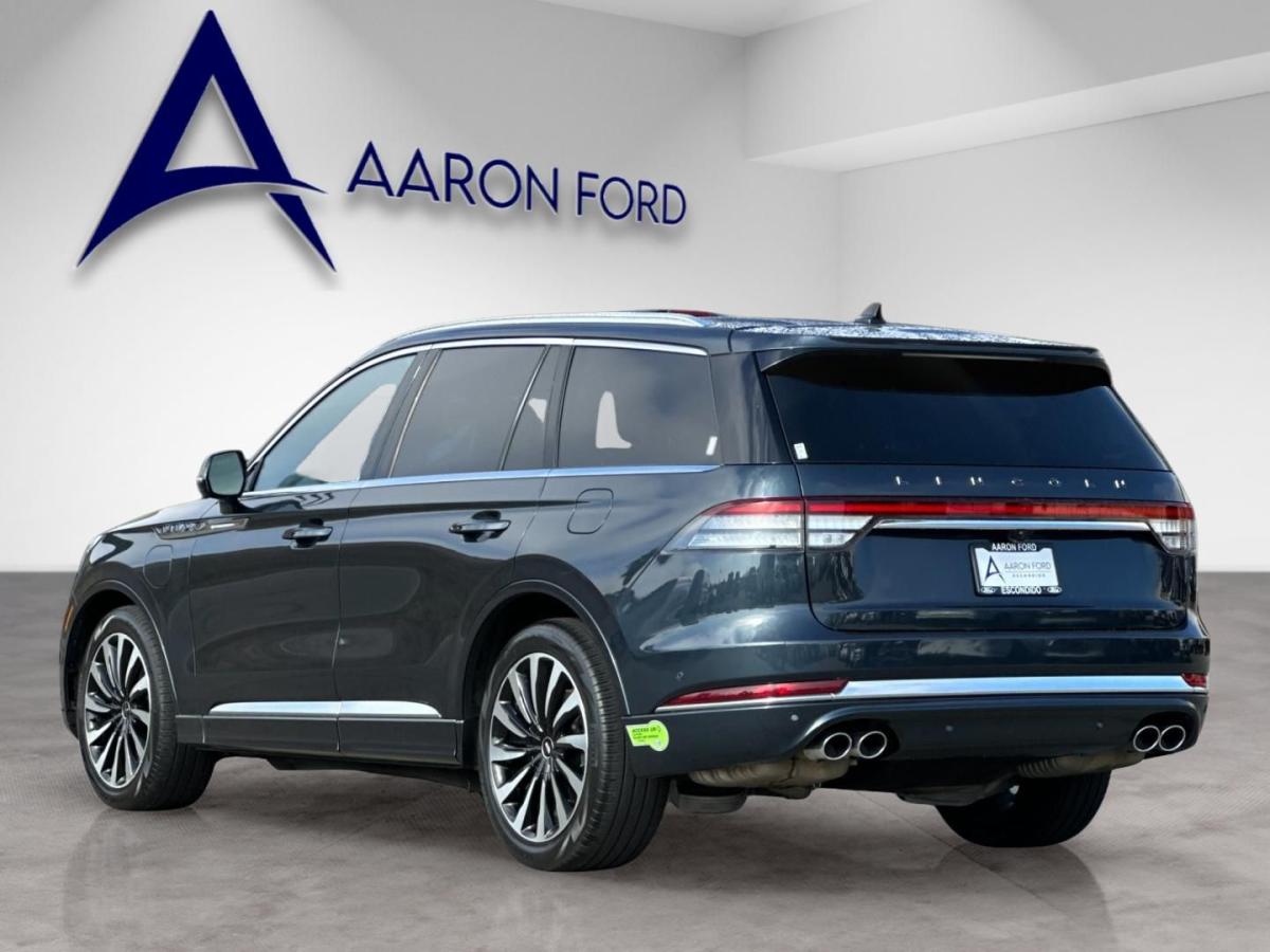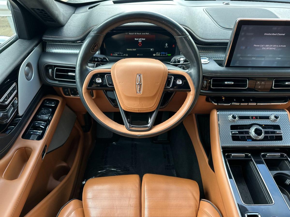 The 2023 Lincoln Aviator Grand Touring AWD redefines modern luxury with an exceptional blend of power, efficiency, and cutting-edge technology. At its core, a sophisticated 3.0L V6 plug-in hybrid powertrain delivers exhilarating performance while offering the ability to drive on electric power alone for added efficiency and refinement. Paired with an advanced all-wheel drive system and adaptive air suspension, the Aviator provides a smooth, composed ride that effortlessly adapts to changing road conditions.From the outside, the Aviator commands attention with its sleek, sculpted design, highlighted by adaptive pixel LED headlights, a bold chrome mesh grille, and striking 21-inch bright machined aluminum wheels. Subtle yet premium touches like illuminated Lincoln badging, soft-close doors, and a panoramic Vista Roof elevate its presence and sophistication.Inside, the cabin is a sanctuary of comfort and innovation. Premium tan leather seating surfaces, heated and ventilated front seats, and second-row captains chairs ensure every passenger travels in first-class comfort. A 10.1-inch touchscreen with SYNC 3, paired with a fully digital instrument cluster, delivers seamless connectivity through Lincoln Connect with 4G LTE Wi-Fi. The Revel Ultima 3D audio system surrounds you with immersive sound, while features like a heated steering wheel and quad-zone climate control enhance every journey.Technology takes center stage with a comprehensive suite of driver-assist features, including a 360-degree camera, adaptive cruise control with stop-and-go, lane centering, and speed sign recognition. The Aviators advanced safety systemssuch as evasive steering assist, pre-collision assist with automatic emergency braking, and a full array of airbagsoffer peace of mind at every turn.With its plug-in hybrid capability, refined craftsmanship, and an impressive array of luxury features, the 2023 Lincoln Aviator Grand Touring AWD stands apart as a sophisticated SUV designed for those who expect performance without compromise and luxury without limits.