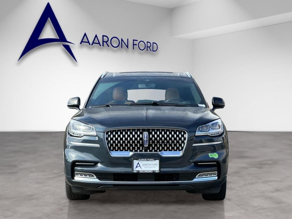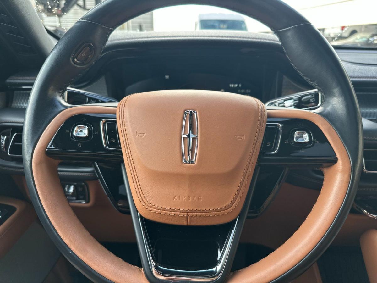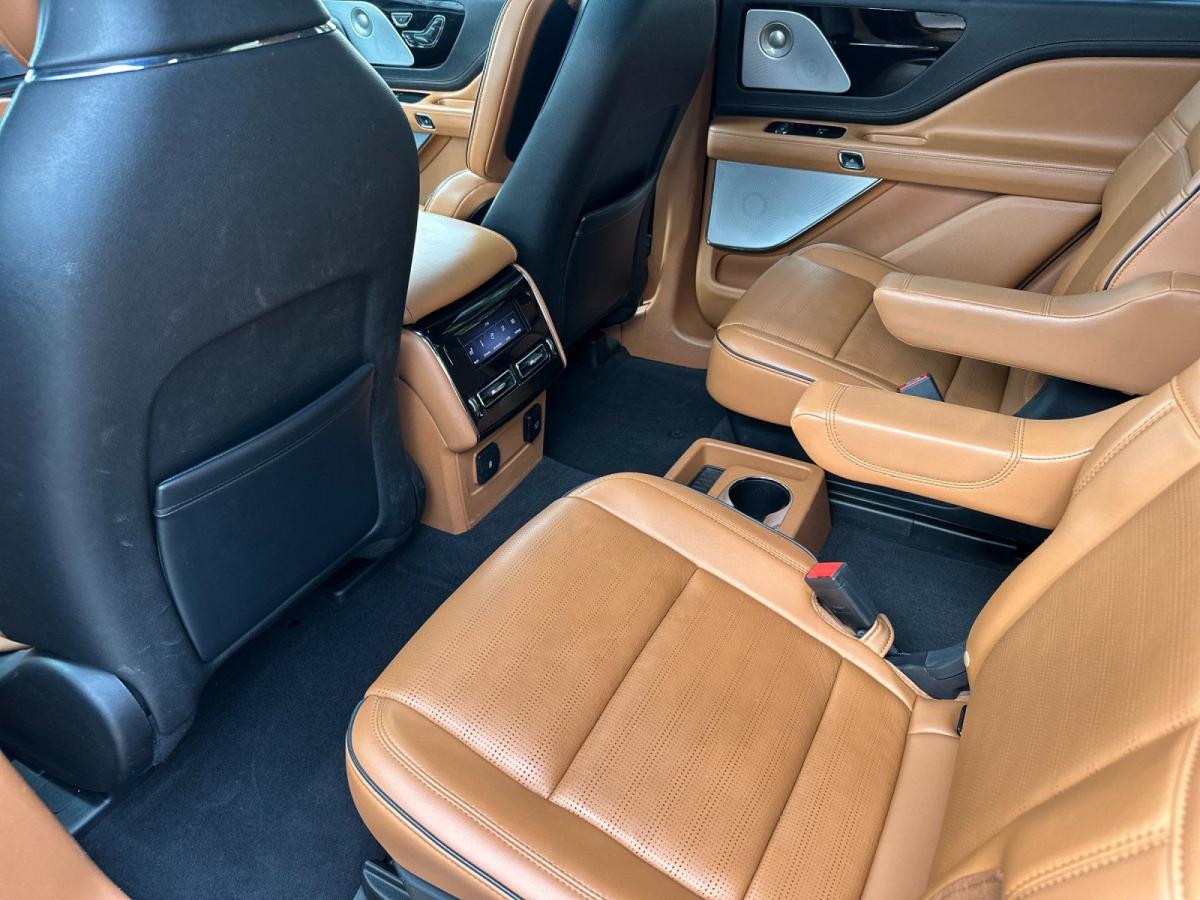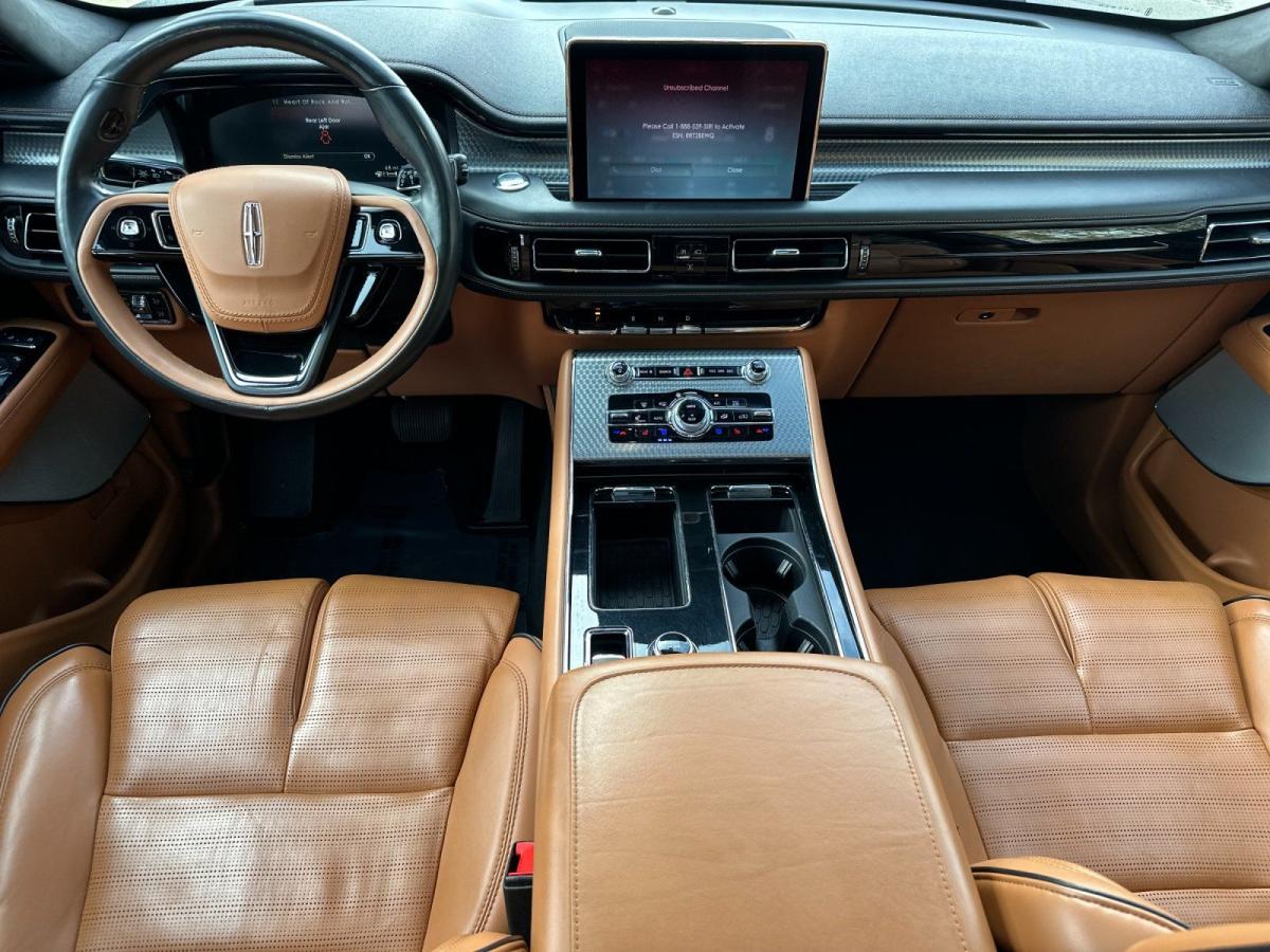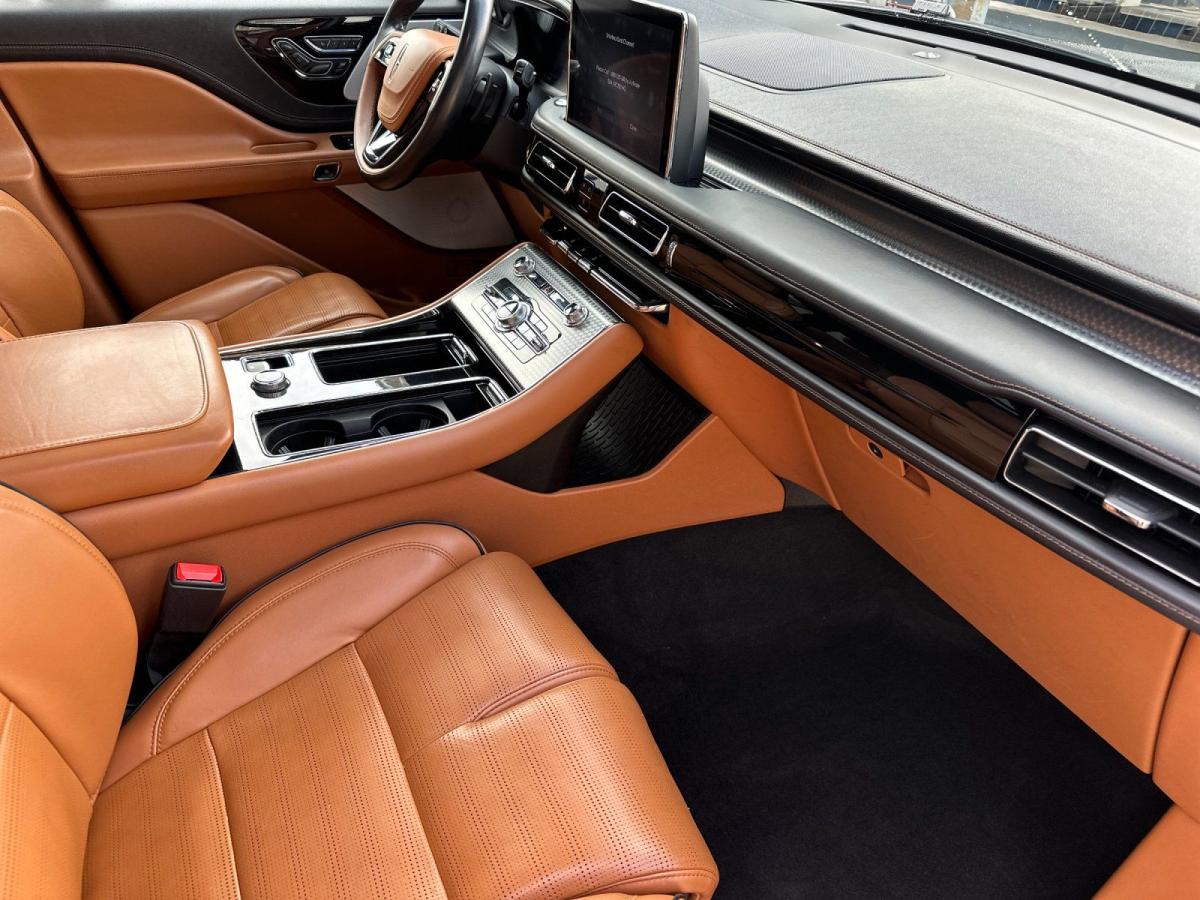 The 2023 Lincoln Aviator Grand Touring AWD redefines modern luxury with an exceptional blend of power, efficiency, and cutting-edge technology. At its core, a sophisticated 3.0L V6 plug-in hybrid powertrain delivers exhilarating performance while offering the ability to drive on electric power alone for added efficiency and refinement. Paired with an advanced all-wheel drive system and adaptive air suspension, the Aviator provides a smooth, composed ride that effortlessly adapts to changing road conditions.From the outside, the Aviator commands attention with its sleek, sculpted design, highlighted by adaptive pixel LED headlights, a bold chrome mesh grille, and striking 21-inch bright machined aluminum wheels. Subtle yet premium touches like illuminated Lincoln badging, soft-close doors, and a panoramic Vista Roof elevate its presence and sophistication.Inside, the cabin is a sanctuary of comfort and innovation. Premium tan leather seating surfaces, heated and ventilated front seats, and second-row captains chairs ensure every passenger travels in first-class comfort. A 10.1-inch touchscreen with SYNC 3, paired with a fully digital instrument cluster, delivers seamless connectivity through Lincoln Connect with 4G LTE Wi-Fi. The Revel Ultima 3D audio system surrounds you with immersive sound, while features like a heated steering wheel and quad-zone climate control enhance every journey.Technology takes center stage with a comprehensive suite of driver-assist features, including a 360-degree camera, adaptive cruise control with stop-and-go, lane centering, and speed sign recognition. The Aviators advanced safety systemssuch as evasive steering assist, pre-collision assist with automatic emergency braking, and a full array of airbagsoffer peace of mind at every turn.With its plug-in hybrid capability, refined craftsmanship, and an impressive array of luxury features, the 2023 Lincoln Aviator Grand Touring AWD stands apart as a sophisticated SUV designed for those who expect performance without compromise and luxury without limits.