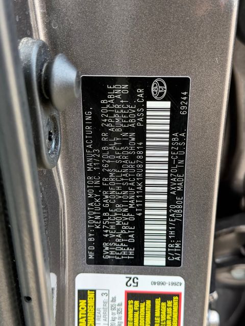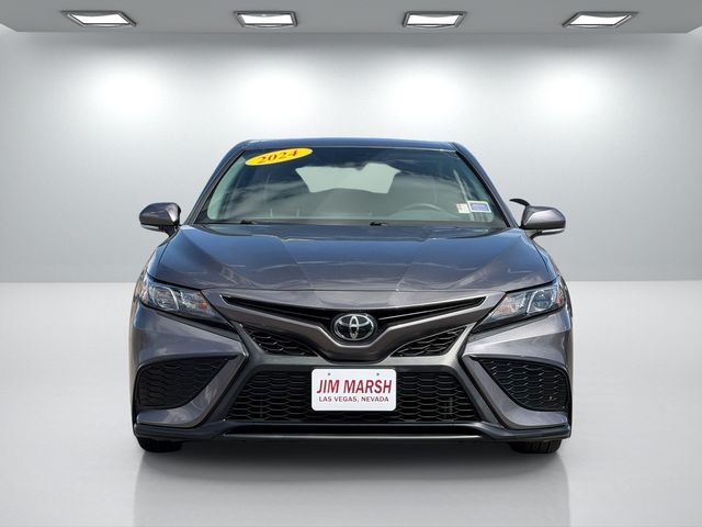 CARFAX One-Owner.Clean CARFAX.28/39 City/Highway MPGPredawn Gray Mica 2024 Toyota Camry SE FWD 8-Speed Automatic 2.5L I4 DOHC 16V Black Cloth.See Ya in a KIA.All prices plus $495 Doc Fee (lowest fees in Las Vegas) Blackout Package (TMS), Convenience Package (Auto-Dimming Rear-View Mirror, HomeLink, and Smart Key System w/Push Button Start), Black Cloth, 18" x 8J Alloy Wheels, 4-Wheel Disc Brakes, 6 Speakers, ABS brakes, Air Conditioning, All Weather Floor Liners/Cargo Tray (TMS), Alloy wheels, AM/FM radio: SiriusXM, Apple CarPlay/Android Auto, Auto High-beam Headlights, Automatic temperature control, Blind Spot Monitor w/Rear Cross Traffic Alert, Brake assist, Bumpers: body-color, Delay-off headlights, Door Edge Guard (TMS), Driver door bin, Driver vanity mirror, Dual front impact airbags, Dual front side impact airbags, Electronic Stability Control, Emergency communication system: Safety Connect (1-year trial), Exterior Parking Camera Rear, Four wheel independent suspension, Front anti-roll bar, Front Bucket Seats, Front Center Armrest, Front dual zone A/C, Front reading lights, Fully automatic headlights, Heated door mirrors, Illuminated entry, Knee airbag, Leather steering wheel, Low tire pressure warning, Occupant sensing airbag, Outside temperature display, Overhead airbag, Overhead console, Panic alarm, Passenger door bin, Passenger vanity mirror, Power door mirrors, Power driver seat, Power steering, Power windows, Radio data system, Radio: Audio, Rear anti-roll bar, Rear Dual USB Power Ports (TMS), Rear seat center armrest, Rear side impact airbag, Rear window defroster, Remote keyless entry, Security system, Speed control, Speed-sensing steering, Split folding rear seat, Spoiler, Sport SofTex Seat Trim w/Fabric Inserts, Steering wheel mounted audio controls, Tachometer, Telescoping steering wheel, Tilt steering wheel, Traction control, Trip computer, Turn signal indicator mirrors, and Variably intermittent wipers.
