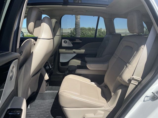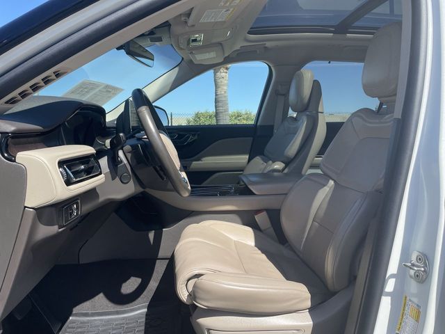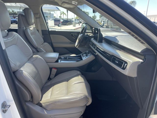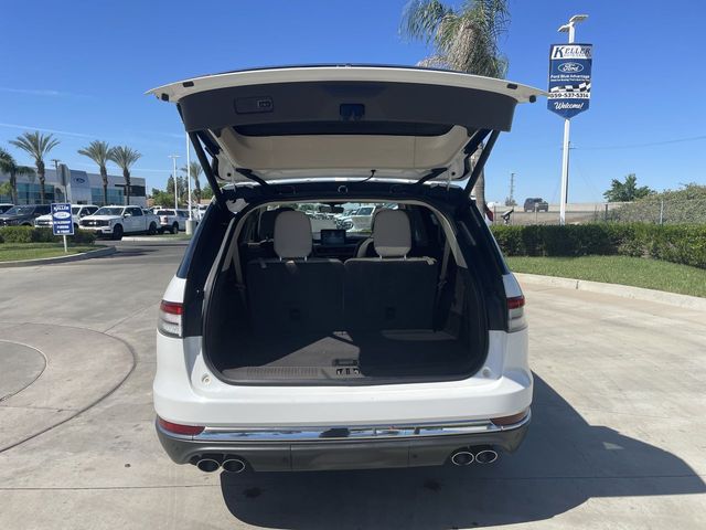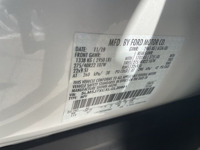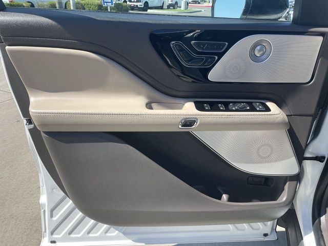 3.0L V6 250 Amps Alternator, 30-Way Perfect Position Seats w/Active Motion, 4-Pin & 7-Pin Connectors, Active Park Assist Plus, Adaptive Cruise Control w/Traffic Jam Assist, Adaptive Pixel LED Headlamps, Adaptive Steering, Adaptive Suspension w/Road Preview, Air Glide Suspension w/Dynamic Lower Entry, Blind Spot Detection w/Cross Traffic Alert, Class IV Hitch & Wiring, Class IV Trailer Tow Package, Convenience Package, Dynamic Handling Package, Elements Package Plus, Equipment Group 202A, Evasive Steering Assist, Head-Up Display, Heated Steering Wheel, Heated VisioBlade Wipers, Heated/Ventilated 2nd Row Outboard Seats, Heated/Ventilated Driver & Passenger Seats, Illumination Package, Lincoln Co-Pilot360 Plus, Lincoln Lit Star in Grille, Luxury Package, Navigation System, Panoramic Vista Roof w/Power Shade, Phone As A Key, Radio: Revel Ultima 3D Audio System w/28 Speakers, Rear Door Sunshades, Reverse Brake Assist, Smart Trailer Tow, Soft Close Doors, Trailer Sway Control, Wheels: 22" Ultra Bright Machined Aluminum, Wireless Charging Pad, 14 Speakers, 3.58 Axle Ratio, 3rd row seats: split-bench, 4-Wheel Disc Brakes, ABS brakes, Adaptive suspension, Air Conditioning, All-Weather Floor Liners, Alloy wheels, AM/FM radio: SiriusXM, Audio memory, Auto High-beam Headlights, Auto-dimming door mirrors, Auto-dimming Rear-View mirror, Automatic temperature control, Brake assist, Bumpers: body-color, Compass, Delay-off headlights, Driver door bin, Driver vanity mirror, Dual front impact airbags, Dual front side impact airbags, Electronic Stability Control, Emergency communication system: SYNC 3 911 Assist, Four wheel independent suspension, Front anti-roll bar, Front Bucket Seats, Front Center Armrest, Front dual zone A/C, Front fog lights, Front reading lights, Full Rear Console, Fully automatic headlights, Garage door transmitter, Heated door mirrors, Heated front seats, HVAC memory, Illuminated entry, Knee airbag, Low tire pressure warning, Memory seat, Occupant sensing airbag, Outside temperature display, Overhead airbag, Overhead console, Panic alarm, Passenger door bin, Passenger vanity mirror, Power door mirrors, Power driver seat, Power Liftgate, Power passenger seat, Power steering, Power windows, Premium Leather Enhanced Micro-Perforated Seats, Radio data system, Radio: Revel AM/FM Audio System w/14 Speakers, Rain sensing wipers, Rear air conditioning, Rear anti-roll bar, Rear audio controls, Rear dual zone A/C, Rear reading lights, Rear window defroster, Rear window wiper, Remote keyless entry, Security system, SiriusXM Radio, Speed control, Speed-Sensitive Wipers, Split folding rear seat, Spoiler, Steering wheel memory, Steering wheel mounted A/C controls, Steering wheel mounted audio controls, SYNC 3 Communication & Entertainment System, Tachometer, Telescoping steering wheel, Tilt steering wheel, Traction control, Trip computer, Turn signal indicator mirrors, Variably intermittent wipers, Ventilated front seats, Wheels: 20" Bright Machined Aluminum, 250 Amps Alternator, 30-Way Perfect Position Seats w/Active Motion, 4-Pin & 7-Pin Connectors, Active Park Assist Plus, Adaptive Cruise Control w/Traffic Jam Assist, Adaptive Pixel LED Headlamps, Adaptive Steering, Adaptive Suspension w/Road Preview, Air Glide Suspension w/Dynamic Lower Entry, Blind Spot Detection w/Cross Traffic Alert, Class IV Hitch & Wiring, Class IV Trailer Tow Package, Convenience Package, Dynamic Handling Package, Elements Package Plus, Equipment Group 202A, Evasive Steering Assist, Head-Up Display, Heated Steering Wheel, Heated VisioBlade Wipers, Heated/Ventilated 2nd Row Outboard Seats, Heated/Ventilated Driver & Passenger Seats, Illumination Package, Lincoln Co-Pilot360 Plus, Lincoln Lit Star in Grille, Luxury Package, Navigation System, Panoramic Vista Roof w/Power Shade, Phone As A Key, Radio: Revel Ultima 3D Audio System w/28 Speakers, Rear Door Sunshades, Reverse Brake Assist, Smart Trailer Tow, Soft Close Doors, Trailer Sway Control, Wheels: 22" Ultra