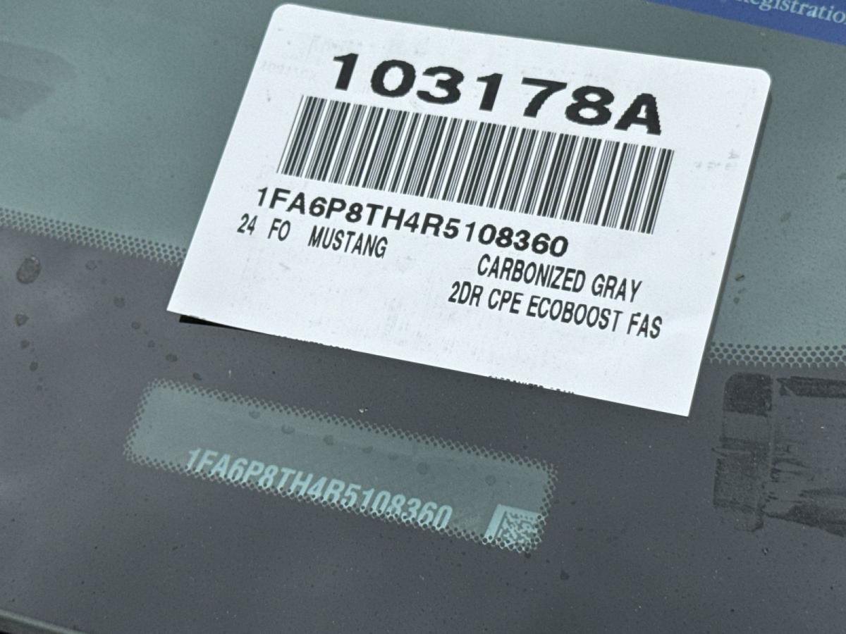 The 2024 Ford Mustang EcoBoost Premium Coupe delivers the perfect balance of iconic performance, modern technology, and everyday comfort, making it a standout in todays sports car market. Powered by a turbocharged 2.3L EcoBoost engine producing an impressive 315 horsepower and paired with a smooth 10-speed automatic transmission, this Mustang offers exhilarating acceleration while maintaining impressive efficiency for daily driving.What truly sets this example apart is its premium Equipment Group 200A, which elevates the driving experience with a refined interior and advanced technology. Inside, youre greeted by a fully digital 12.4-inch instrument cluster and a large 13.2-inch touchscreen powered by SYNC 4, creating a modern, driver-focused cockpit. Comfort is equally impressive with dual-zone climate control, ambient interior lighting, a heated leather-wrapped steering wheel, and wireless charging, all designed to enhance every drive.This Mustang also comes equipped with the Ford Co-Pilot360 suite of driver-assist technologies, giving it a significant edge over competitors. Features like adaptive cruise control, lane-keeping assistance, blind spot monitoring, rear cross-traffic alert, and a rearview camera work together to provide added confidence whether you're commuting or cruising on the highway.On the exterior, the Carbonized Gray Metallic finish complements the Mustangs aggressive body lines, LED signature lighting, and sequential turn signals, giving it a bold and unmistakable presence. Polished aluminum wheels and a rear spoiler further emphasize its sporty, performance-driven design.Additional performance-focused enhancements such as selectable drive modes and a limited-slip rear axle ensure this Mustang is as capable in the corners as it is quick in a straight line. Combined with thoughtful features like remote start, intelligent access with push-button start, and rain-sensing wipers, this 2024 Mustang EcoBoost Premium Coupe delivers a driving experience that blends power, style, and cutting-edge innovation in a way few vehicles in its class can match.