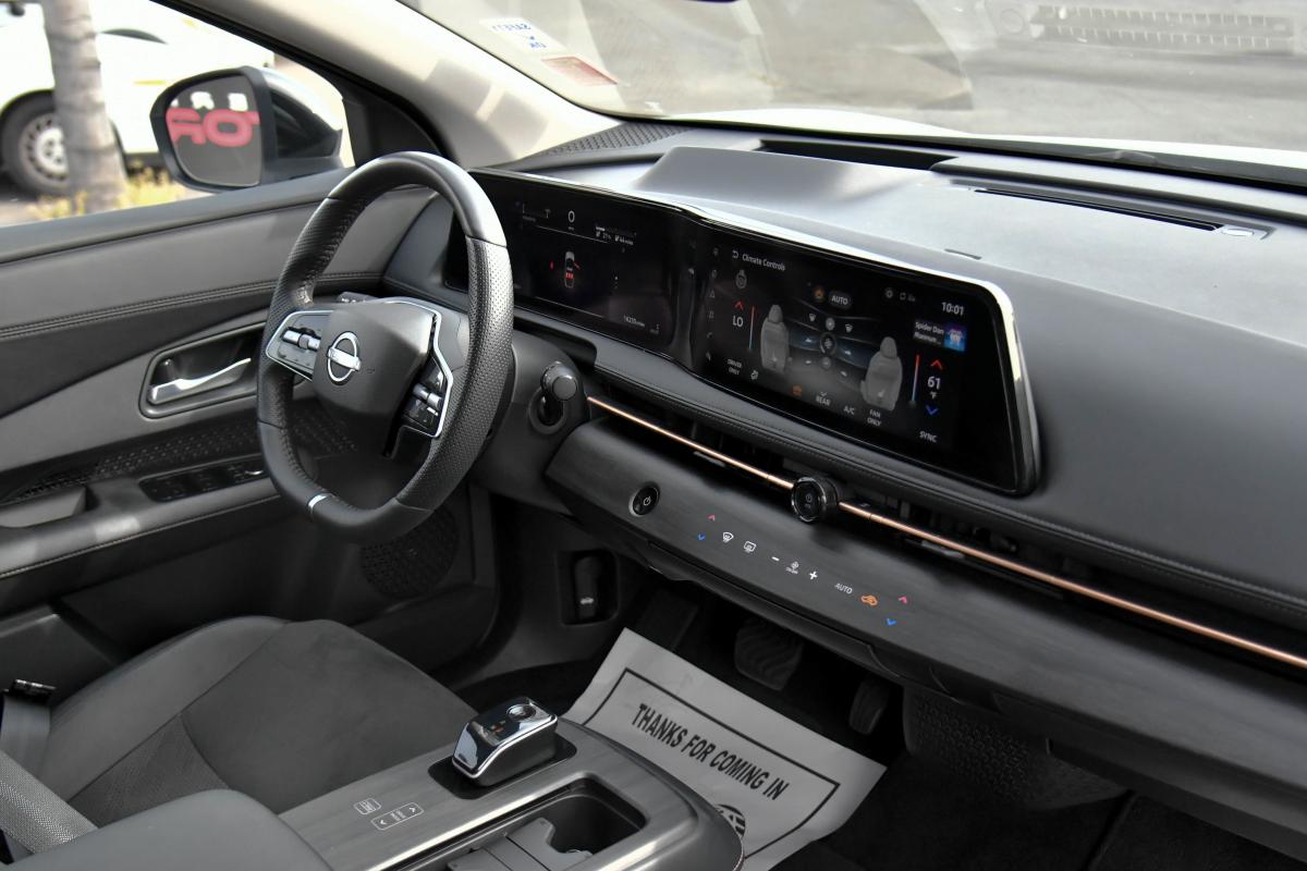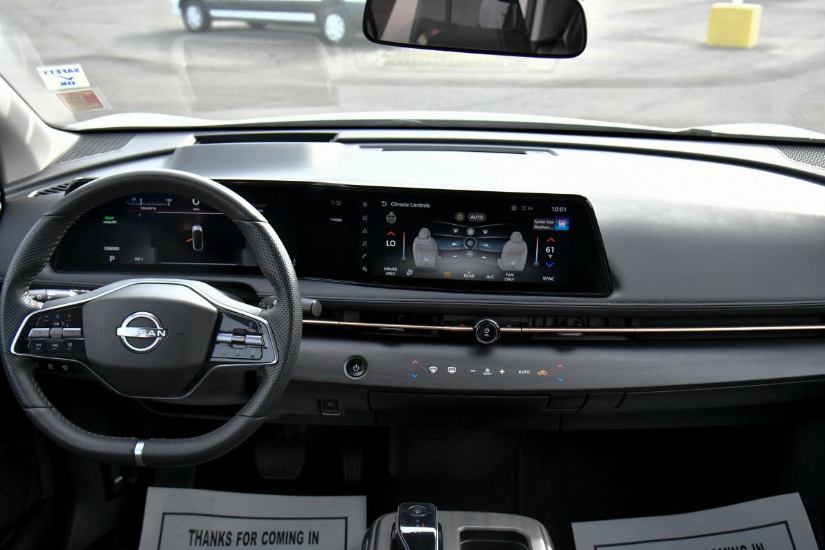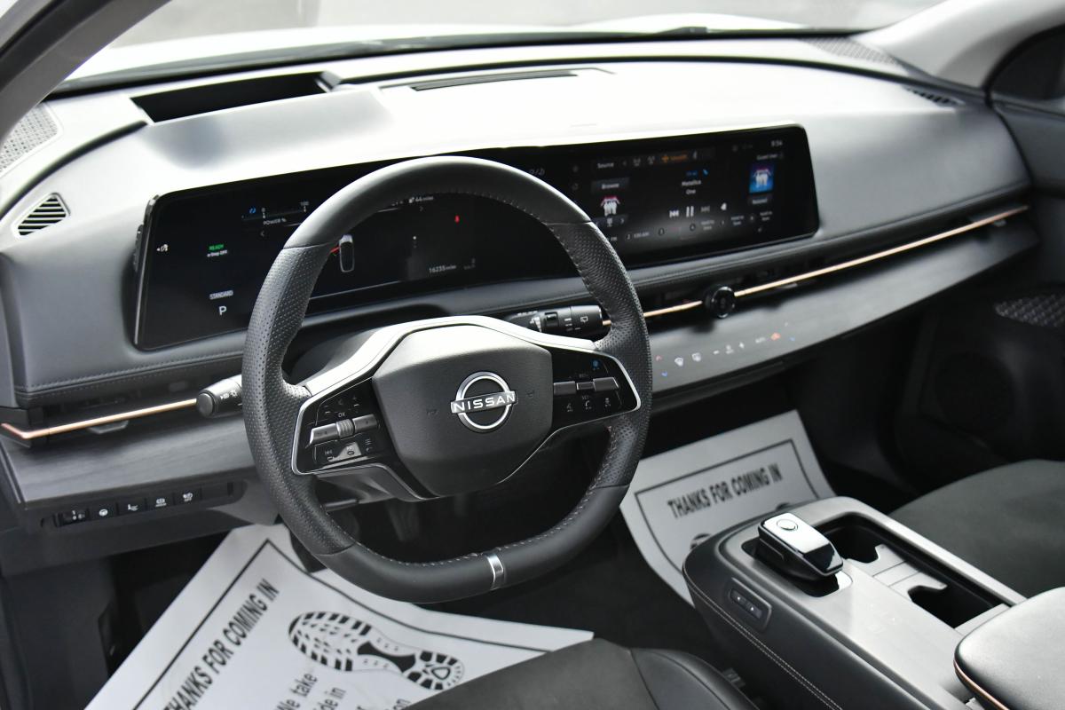 Only 16,213 Miles! This Nissan ARIYA boasts a Electric engine powering this Automatic transmission. EVEREST WHITE PEARL TRICOAT, CHARCOAL, LEATHERETTE SEATING SURFACES, [L92] CARPETED FLOOR MATS & FIRST AID KIT.*This Nissan ARIYA Comes Equipped with These Options *[B92] BLACK PAINTED SPLASH GUARDS, Wireless Phone Connectivity, Wing Spoiler, Wheels: 19 Alloy -inc: aero wheel covers, Wheels w/Painted Accents w/Half Wheel Covers, Voice Activated Dual Zone Front Automatic Air Conditioning, Vehicle Dynamic Control (VDC) Electronic Stability Control (ESC), Trip Computer, Transmission: Electric Continuously Variable -inc: ECO mode, sport mode and e-step mode, Transmission w/Driver Selectable Mode.