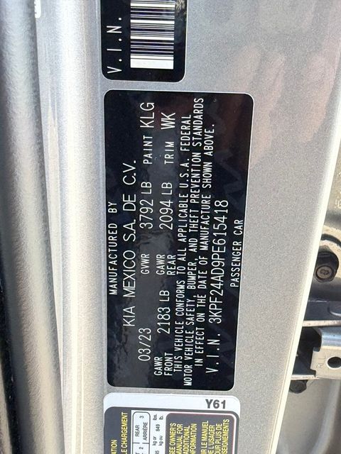 CARFAX One-Owner.Priced below KBB Fair Purchase Price!Clean CARFAX.28/39 City/Highway MPGSteel Gray 2023 Kia Forte LXS FWD CVT 2.0L I4 MPISee Ya in a KIA.All prices plus $495 Doc Fee (lowest fees in Las Vegas) 16" x 6.5J Alloy Wheels, 4 Speakers, 4-Wheel Disc Brakes, ABS brakes, Air Conditioning, Alloy wheels, AM/FM radio, Apple CarPlay & Android Auto, Auto High-beam Headlights, Brake assist, Bumpers: body-color, Cloth Seat Trim, Delay-off headlights, Driver door bin, Driver vanity mirror, Dual front impact airbags, Dual front side impact airbags, Electronic Stability Control, Exterior Parking Camera Rear, Front anti-roll bar, Front Bucket Seats, Front Center Armrest, Front reading lights, Front wheel independent suspension, Fully automatic headlights, Illuminated entry, Low tire pressure warning, Occupant sensing airbag, Outside temperature display, Overhead airbag, Overhead console, Panic alarm, Passenger door bin, Passenger vanity mirror, Power door mirrors, Power steering, Power windows, Radio data system, Radio: 8" Display Audio, Rear window defroster, Remote keyless entry, Security system, Speed control, Split folding rear seat, Steering wheel mounted audio controls, Tachometer, Telescoping steering wheel, Tilt steering wheel, Traction control, Trip computer, and Variably intermittent wipers.
