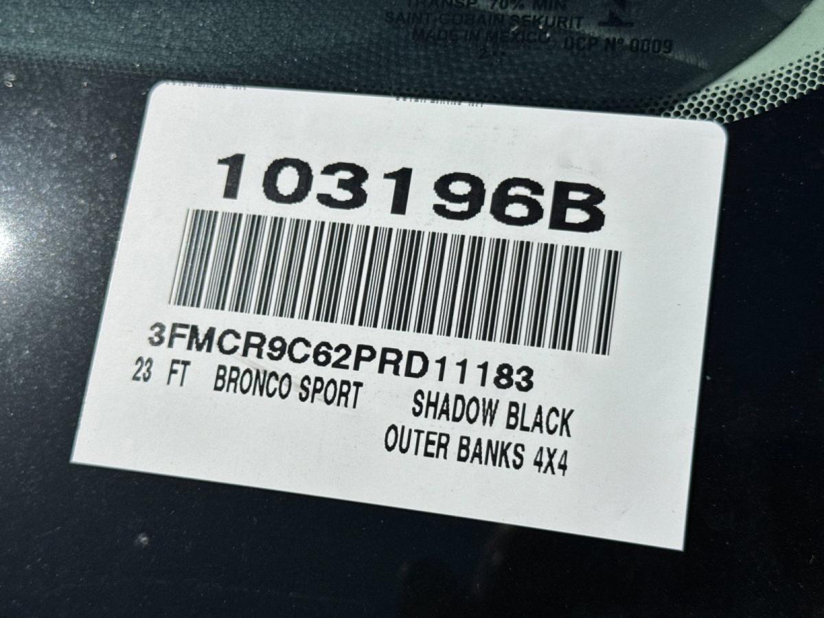 Discover the Exceptional 2023 Ford Bronco Sport Outer Banks - Elevating Your Off-Road AdventureIntroducing the captivating 2023 Ford Bronco Sport Outer Banks, a true embodiment of rugged capability and refined sophistication. This remarkable SUV is poised to redefine your driving experience, blending the perfect balance of performance, technology, and style.- Power Moonroof- Ford Co-Pilot360 Assist+, including Evasive Steering Assist, Voice-Activated Touchscreen Navigation System, and Intelligent Adaptive Cruise Control with Stop & Go- Class II Trailer Tow Package with Trailer Sway Control- Cargo Management System with shelf, divider, and table- Tech Package featuring Bang & Olufsen Sound System, Wireless Charging Pad, and Universal Garage Door OpenerBeneath the striking Black exterior lies a powerful 1.5L EcoBoost engine, coupled with an 8-Speed Automatic transmission and 4-Wheel Drive, delivering an impressive fuel efficiency of 25 city and 28 highway MPG. This SUV is not only a head-turner but also a true workhorse, ready to tackle any adventure with confidence.Step inside the Bronco Sport Outer Banks and you'll be greeted by a wealth of premium features that cater to your every need. The Leather Trimmed Heated Sport Contour Bucket Seats provide unparalleled comfort, while the SYNC 3 Communications & Entertainment System with Apple CarPlay and Android Auto integration keeps you connected and entertained on the go.Safety is of the utmost importance, and the Bronco Sport Outer Banks delivers with a comprehensive suite of advanced driver-assistance technologies. From Dual Front Impact Airbags and Electronic Stability Control to Rear Parking Sensors and the Emergency Communication System, you can rest assured that you and your loved ones are well-protected.Elevate your driving experience with the 2023 Ford Bronco Sport Outer Banks. This exceptional SUV is more than just a vehicle – it's a gateway to a world of off-road exploration, urban sophistication, and uncompromising performance. Visit our showroom today and let us demonstrate how this remarkable Bronco Sport can transform your driving passion into reality.