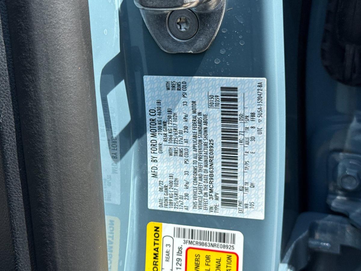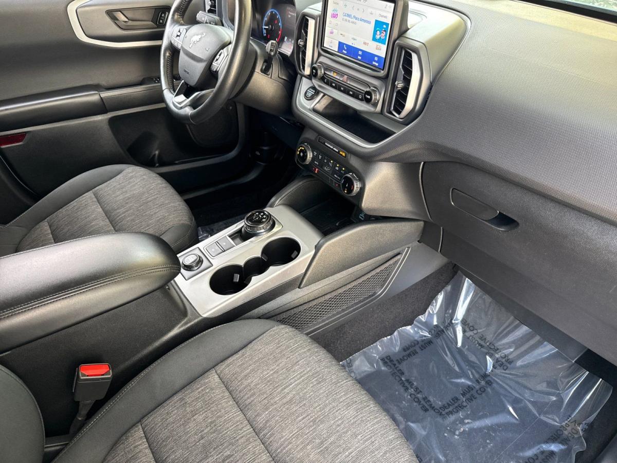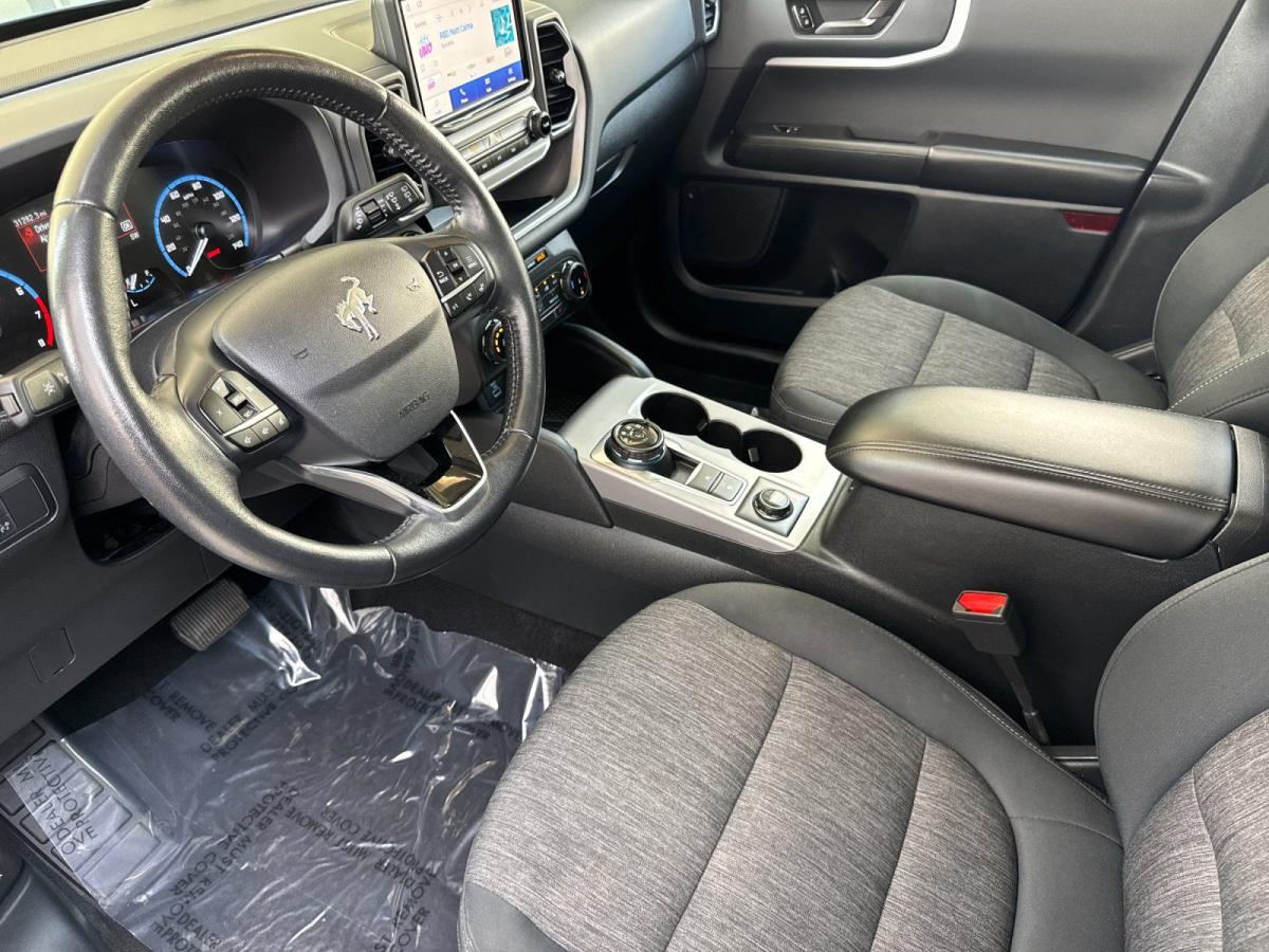 Discover the perfect blend of capability and comfort in the 2022 Ford Bronco Sport Big Bend. This rugged and versatile SUV is ready to take on any adventure, while offering a refined and well-appointed interior that will make every drive a pleasure.- Front & Rear Floor Liners w/Carpet Mats- Rubberized Second Row Seat Backs- Convenience Package (Includes Front Driver & Passenger Seatback Zipper Pockets, Leather-Wrapped Steering Wheel, Rear Parking Sensors, Wireless Charging Pad, Heated Front Bucket Seats, 8-way power driver's seat, LED Fog Lamps, Universal Garage Door Opener, Intelligent Access, push-button start)Powered by a 1.5L EcoBoost engine and equipped with 4-wheel drive, the Bronco Sport Big Bend delivers impressive performance and capability. With 25 city/28 highway MPG, it also offers excellent fuel efficiency, making it a practical choice for both daily commutes and weekend getaways.The Bronco Sport's interior is designed with your comfort and convenience in mind. Enjoy the added luxury of heated front seats, a leather-wrapped steering wheel, and a wireless charging pad for your mobile devices. The Convenience Package also includes a universal garage door opener, rear parking sensors, and intelligent access with push-button start, making your life easier.Safety is a top priority in the Bronco Sport, with features like dual front and side impact airbags, electronic stability control, and a rear-view camera to keep you and your passengers secure. The 4G LTE Wi-Fi hotspot and SYNC 3 infotainment system with Apple CarPlay and Android Auto integration ensure you stay connected on the go.Whether you're tackling the trails or navigating the city streets, the 2022 Ford Bronco Sport Big Bend is the perfect companion. Experience the perfect blend of capability, comfort, and technology by scheduling a test drive today. We're confident you'll be impressed by this exceptional SUV.